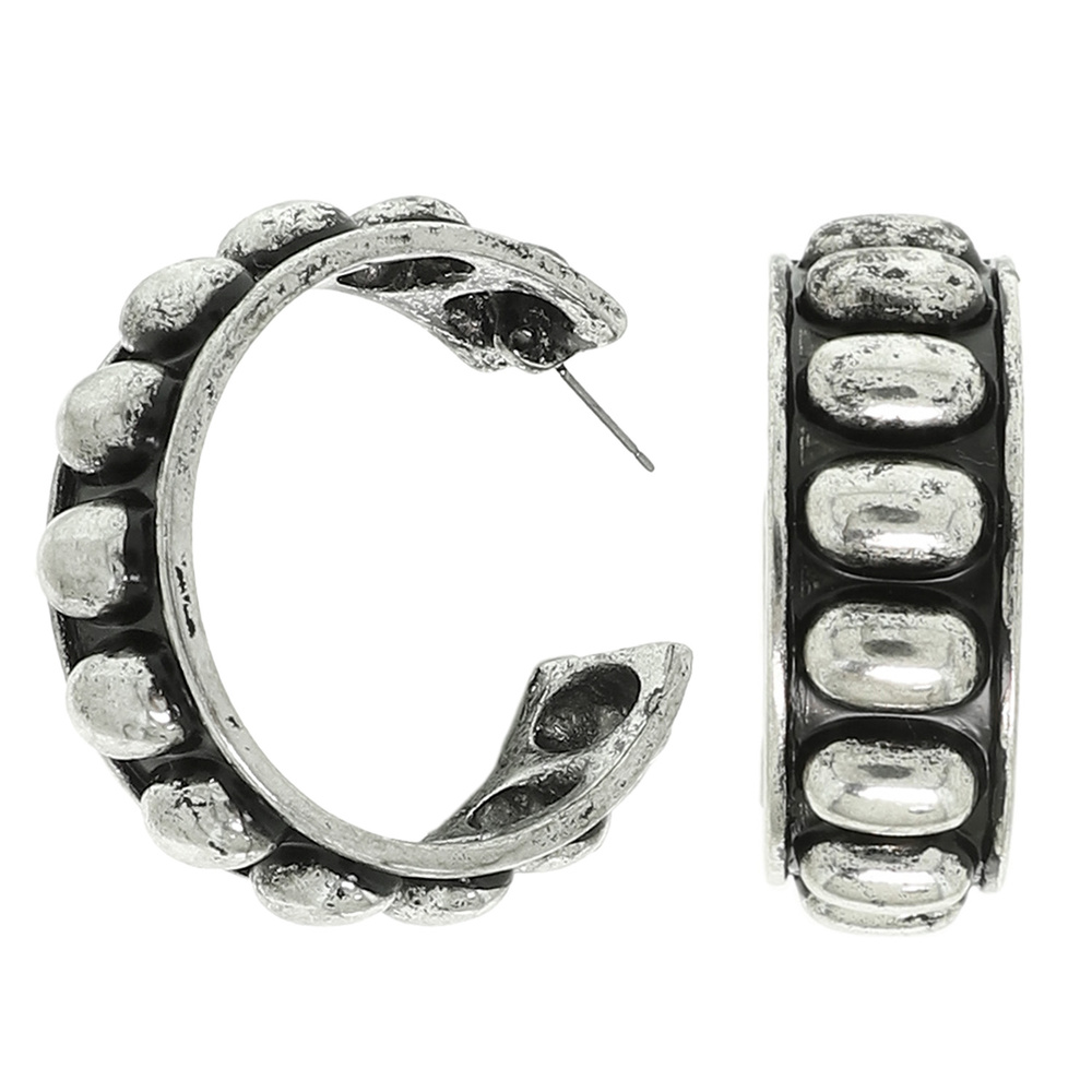 WESTERN BUBBLE HOOP POST EARRINGS IN OXIDIZED SILVER-TONE METAL