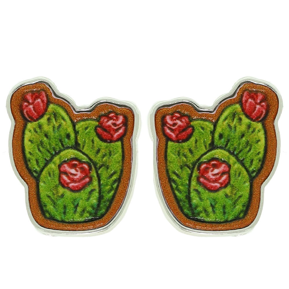 WESTERN MULTI-COLORED TOOLED LEATHER FLORAL CACTUS POST EARRINGS