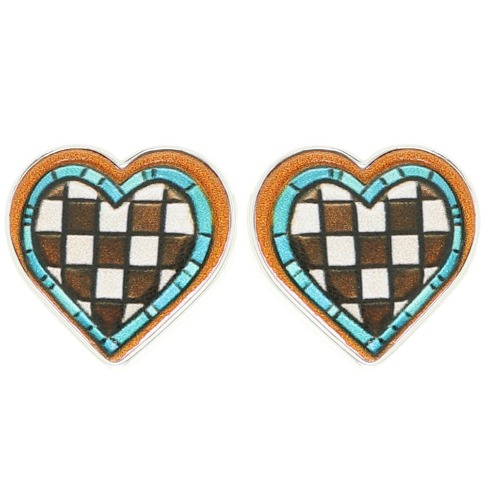 WESTERN THEMED CHECKERED FLAG PATTERNED EPOXY POST EARRINGS