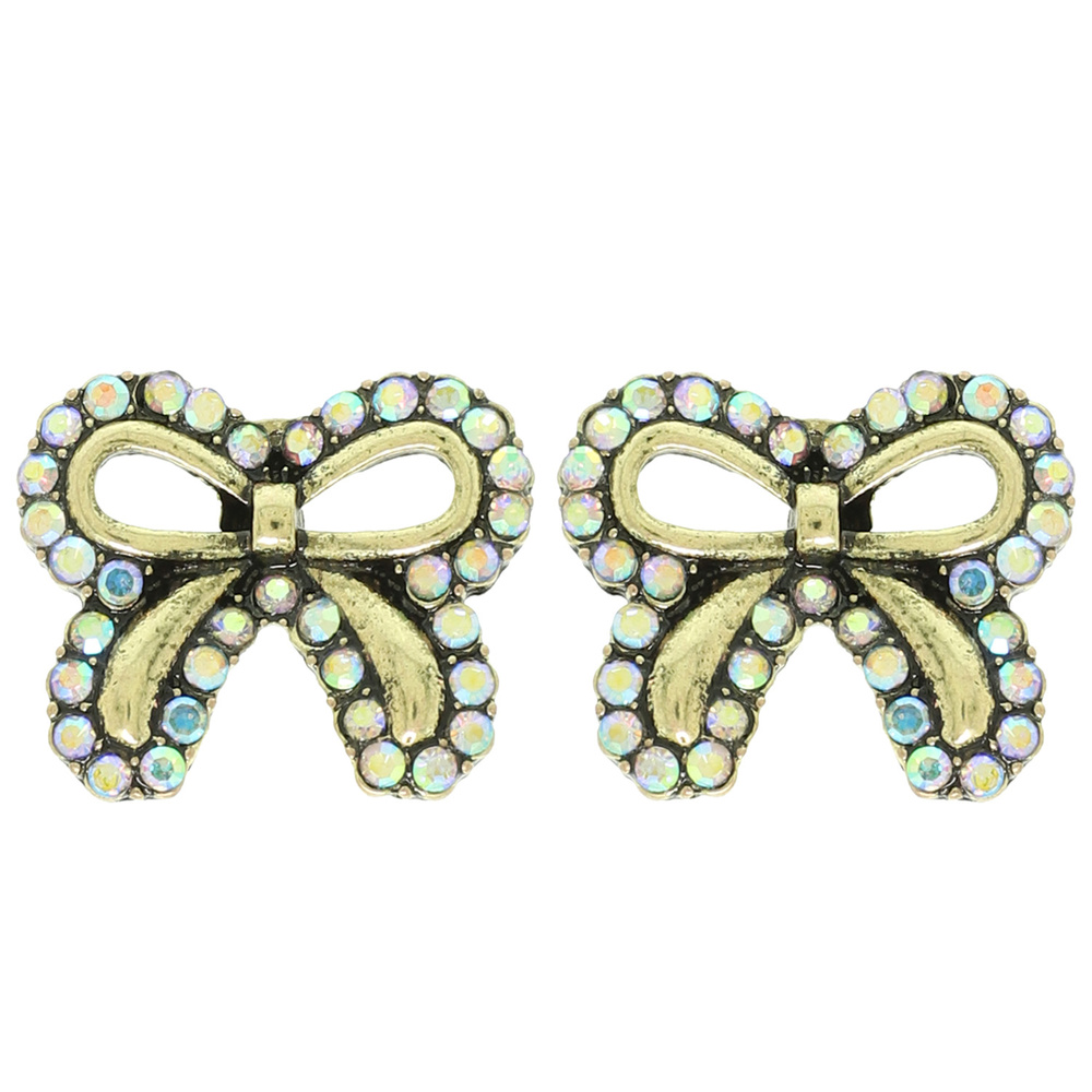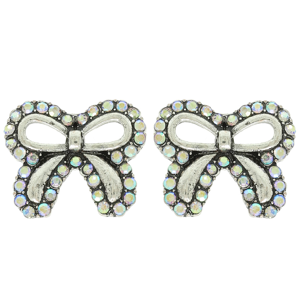 WESTERN CRYSTAL RHINESTONE EMBELLISHED SHORT TAIL BOW POST EARRINGS