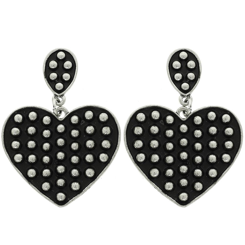 BUBBLE HEART POST DANGLE EARRINGS IN OXIDIZED SILVER-TONE METAL