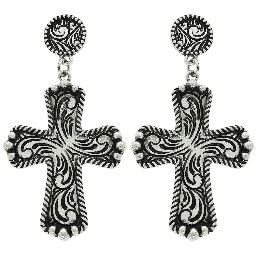 Western Filigree Etched Cross Earrings
