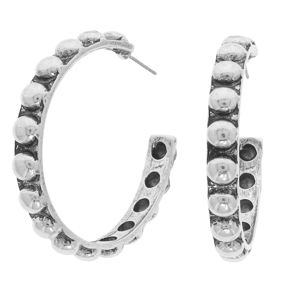 BUBBLE BEADED OPEN HOOP POST EARRINGS IN SILVER-TONE METAL