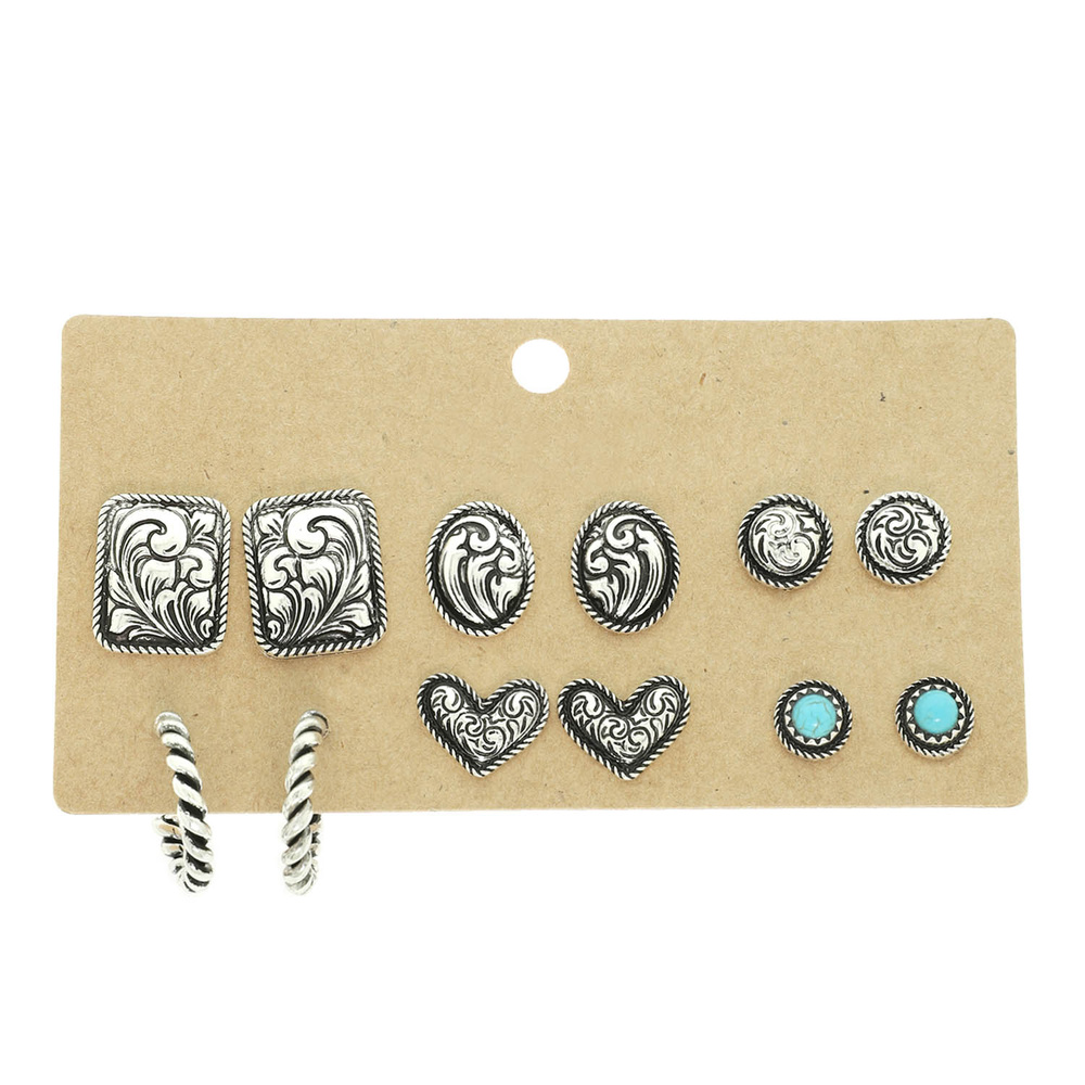 FILIGREE SCROLLED ASSORTED EARRING SET IN OXIDIZED SILVER-TONE METAL