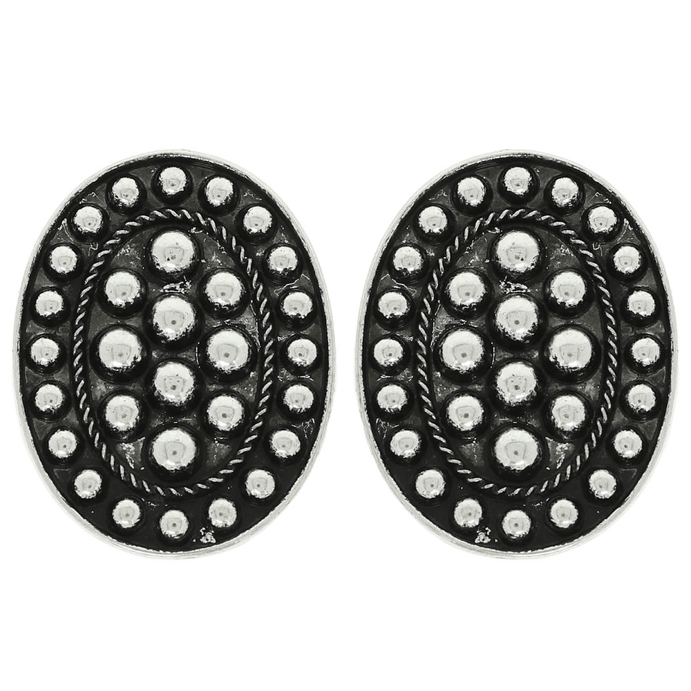 BUBBLE PATTERN OVAL POST EARRINGS IN OXIDIZED SILVER TONE METAL
