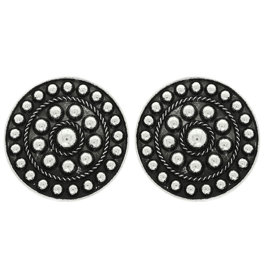 BUBBLE PATTERN ROUND CONCHO POST EARRINGS IN OXIDIZED SILVER TONE METAL