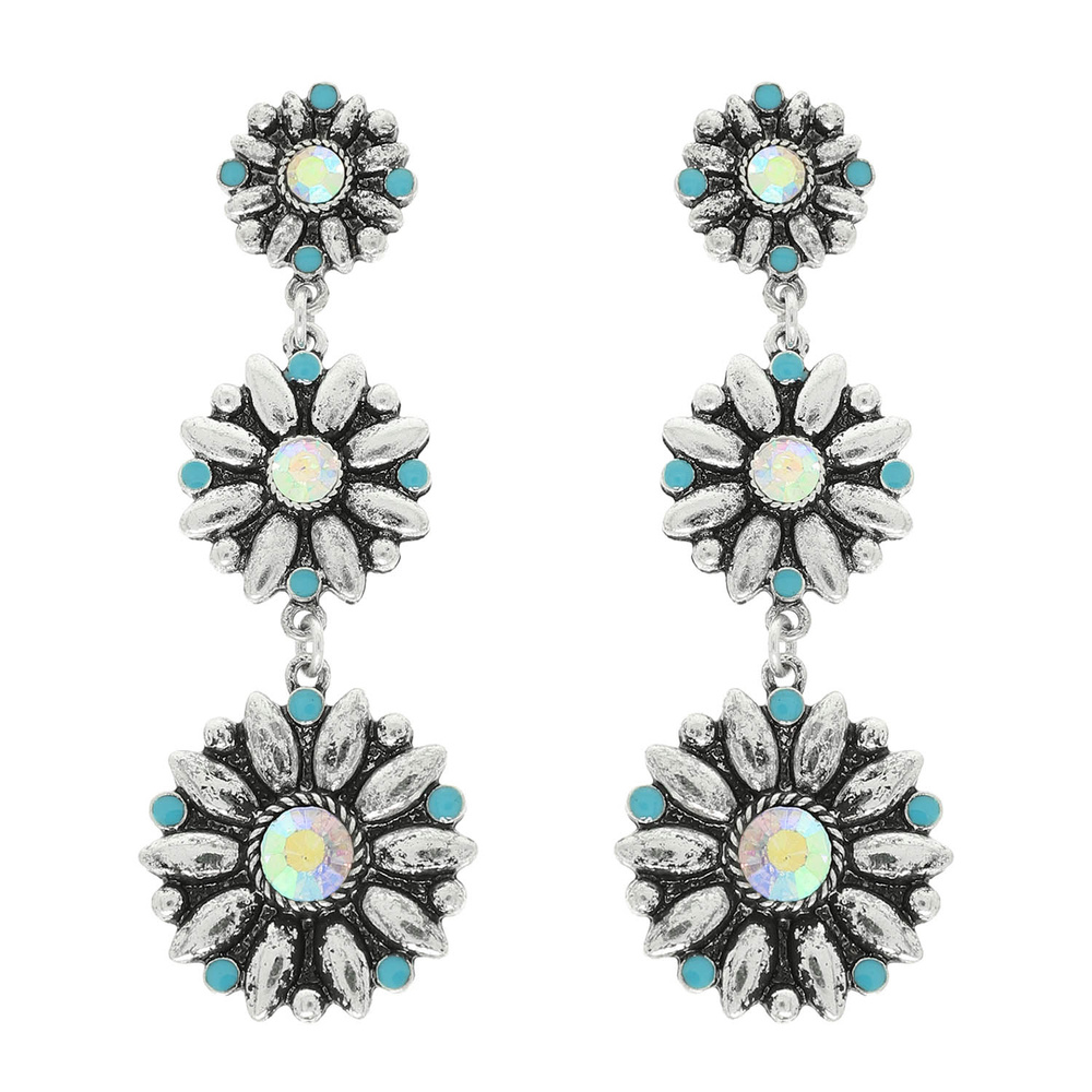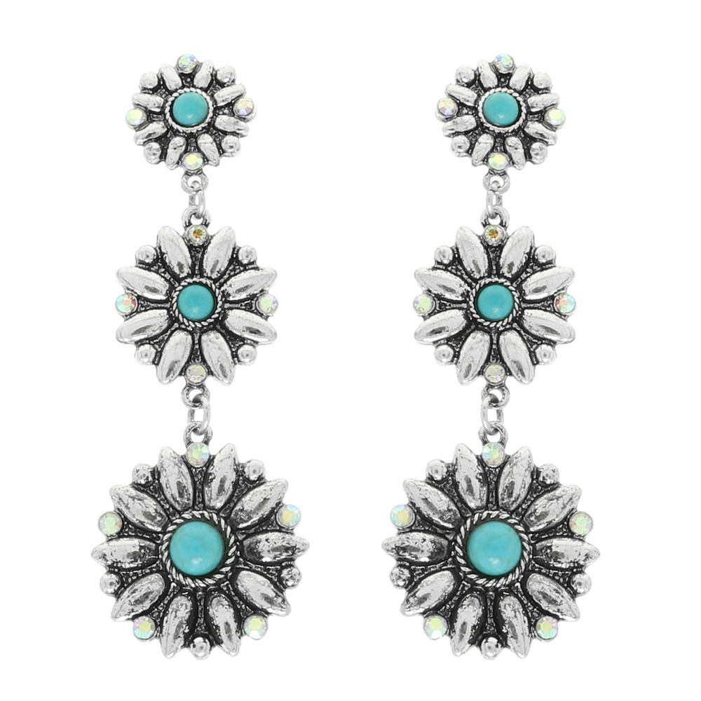 TURQUOISE CRYSTAL EMBELLISHED FLORAL CONCHO LINEAR EARRINGS