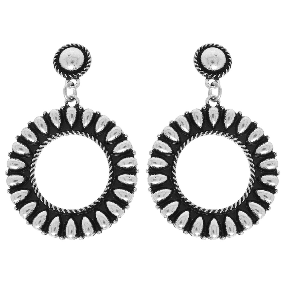 WESTERN CRYSTAL EMBELLISHED BUBBLE PATTERN OPEN DISC POST DANGLE EARRINGS