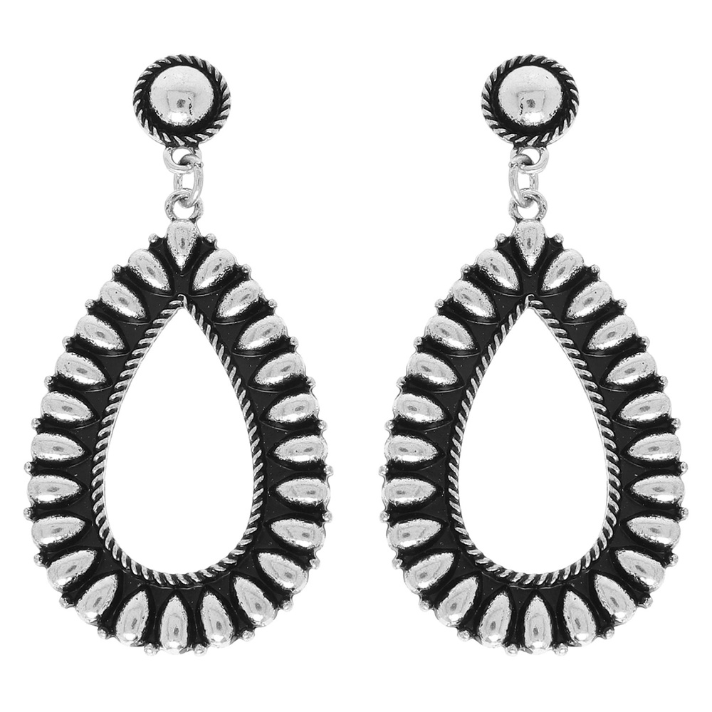 WESTERN CRYSTAL EMBELLISHED BUBBLE PATTERN OPEN TEARDROP POST DANGLE EARRINGS