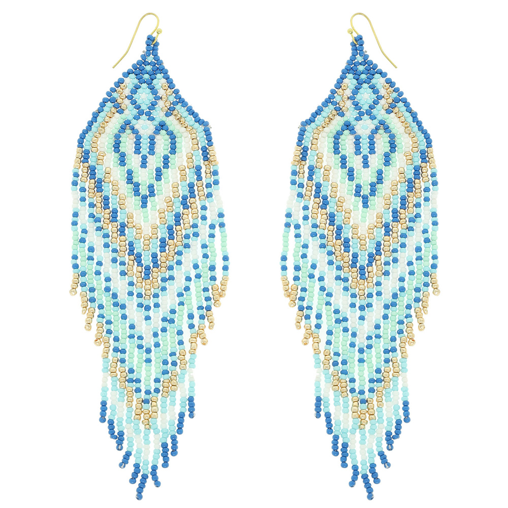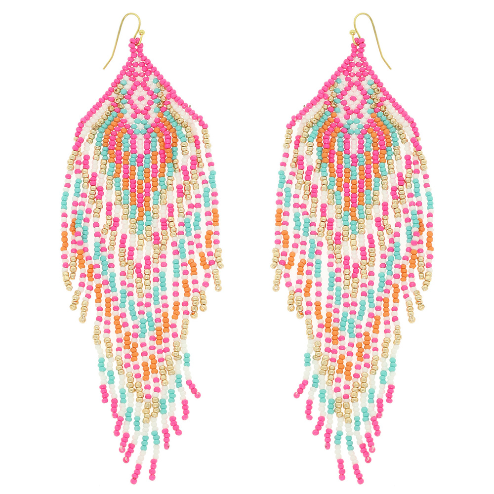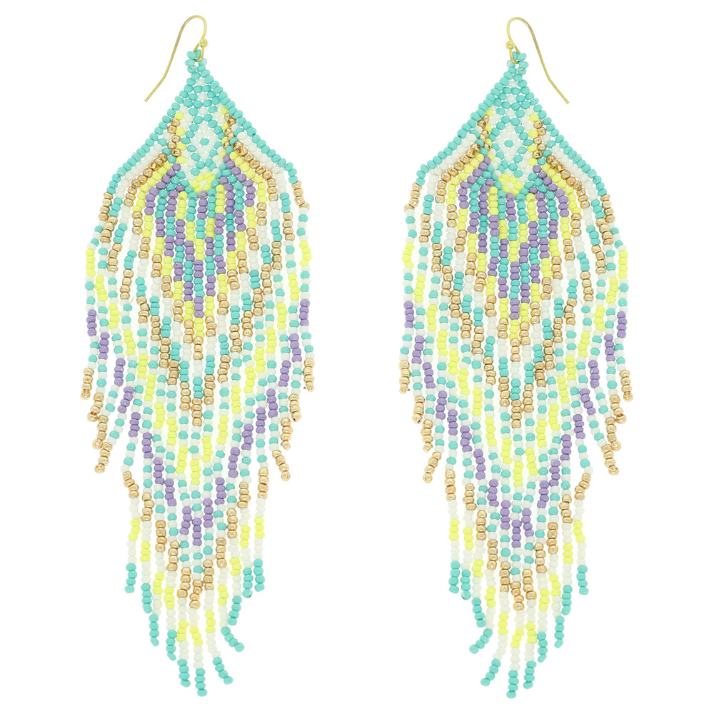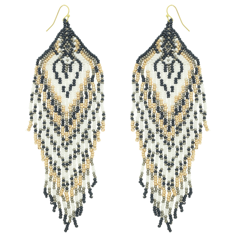 WESTERN NATIVE AMERICAN INSPIRED SEED BEADED FRINGE DANGLE EARRINGS