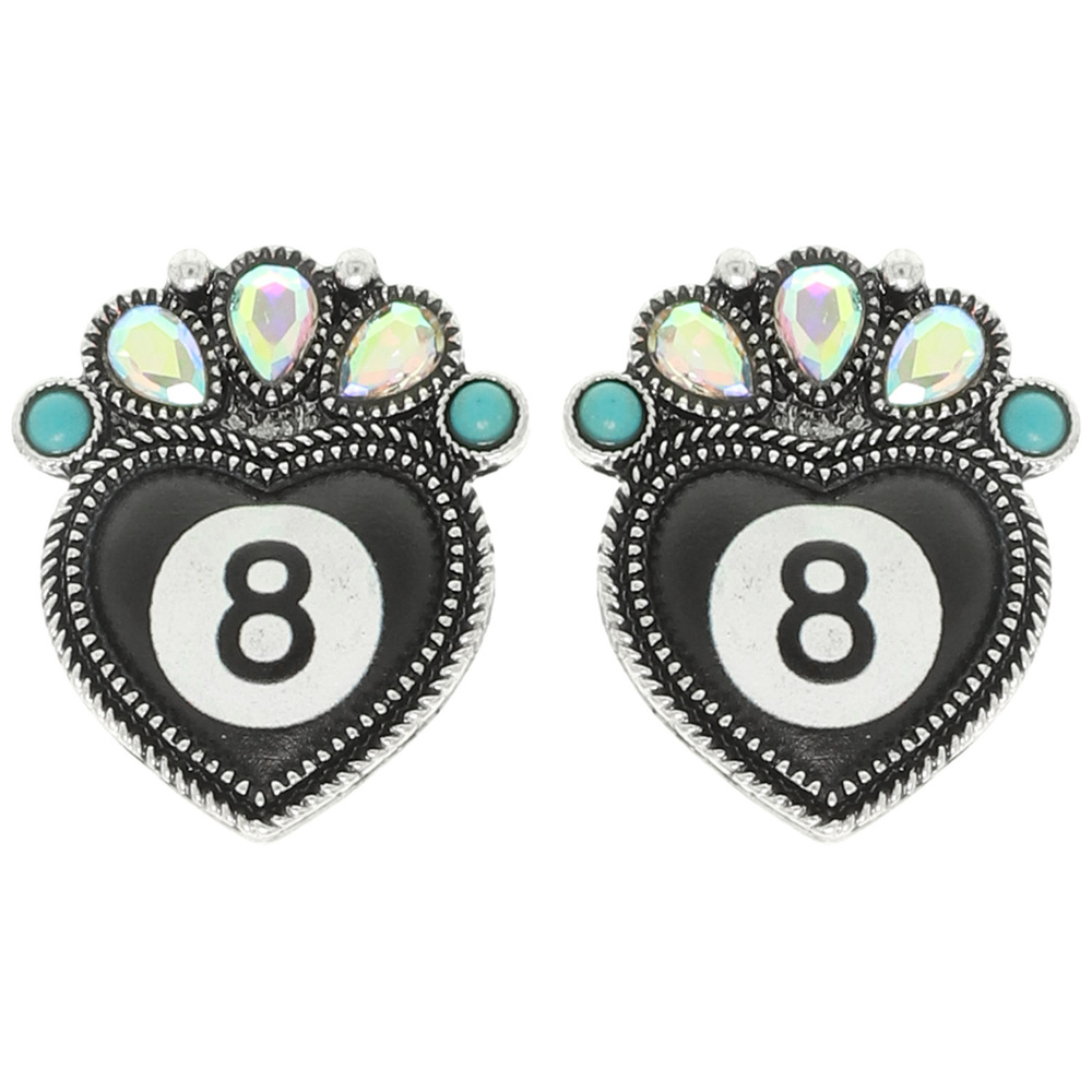 Western 8 Ball Heart Post Earrings