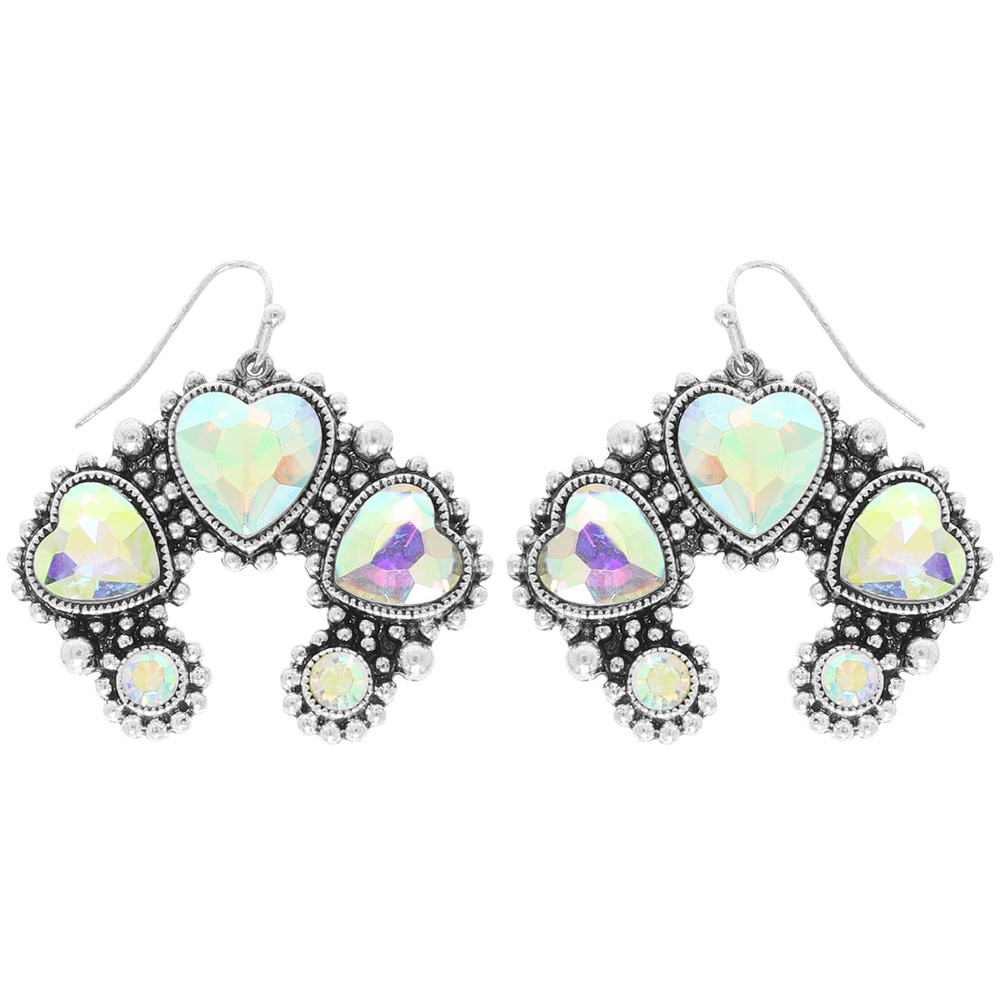 HEART SQUASH BLOSSOM DANGLE EARRINGS FEATURING CRYSTAL ACCENTS IN OXIDIZED SILVER-TONE METAL