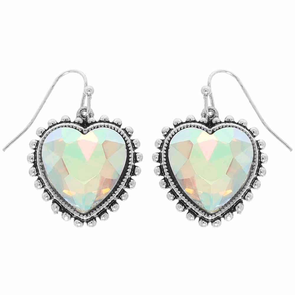 HEART CONCHO DANGLE EARRINGS FEATURING CRYSTAL ACCENTS IN OXIDIZED SILVER-TONE METAL