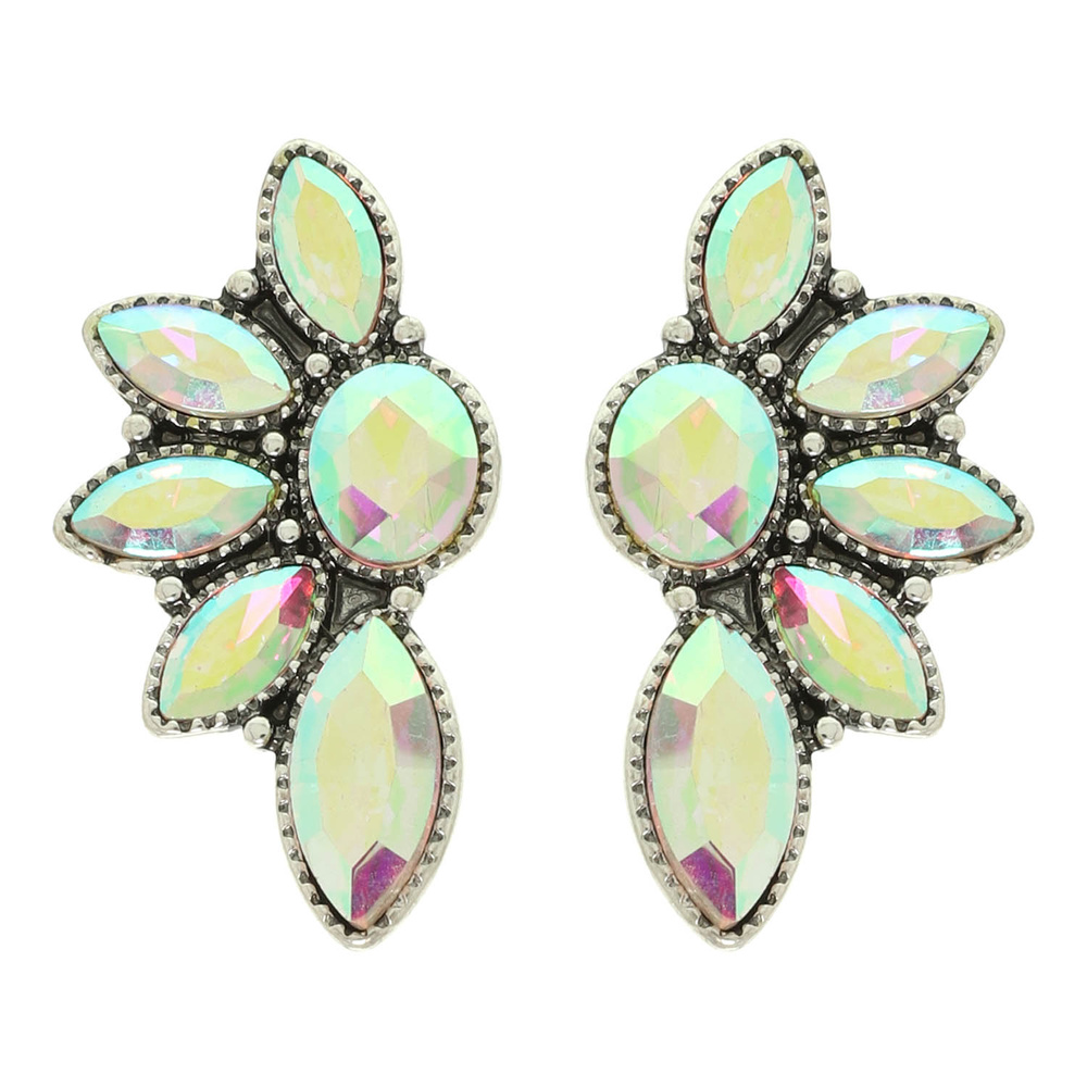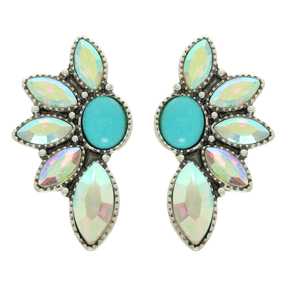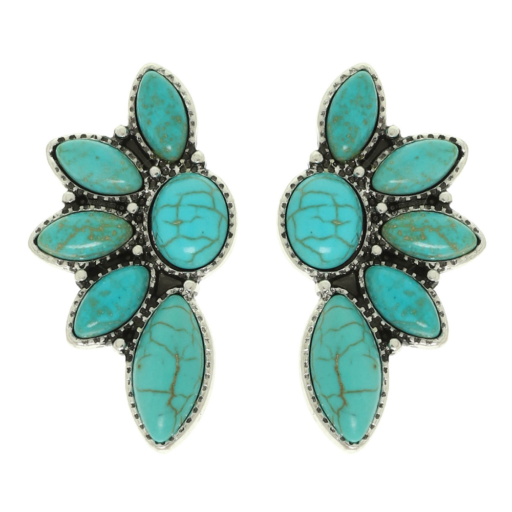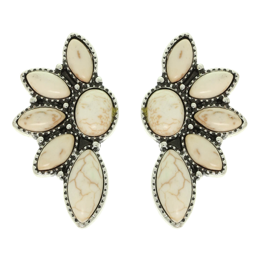 WESTERN TEARDROP POST EARRINGS WITH SEMI STONE DESIGN IN SILVER TONE METAL SETTING