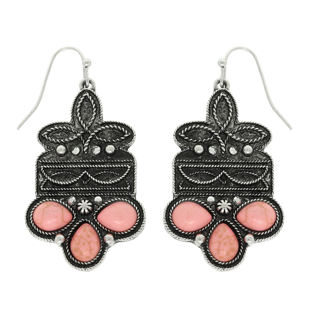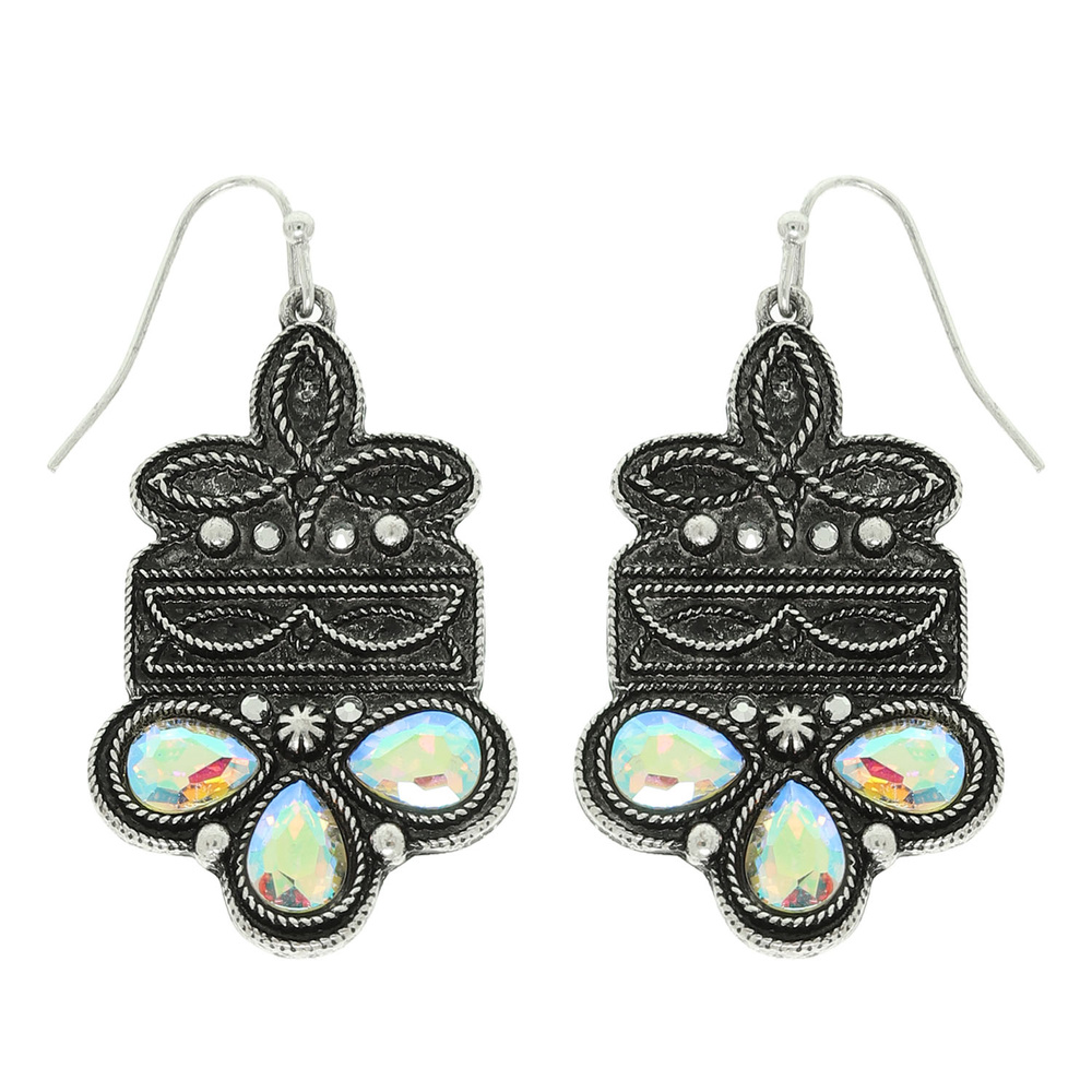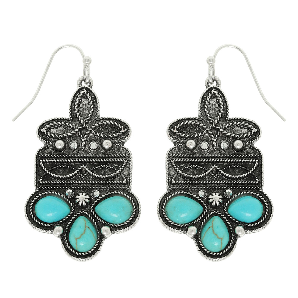 WESTERN BOOT STITCH CONCHO DANGLE EARRINGS FEATURING CRYSTAL OR TURQUOISE STYLE OPTIONS