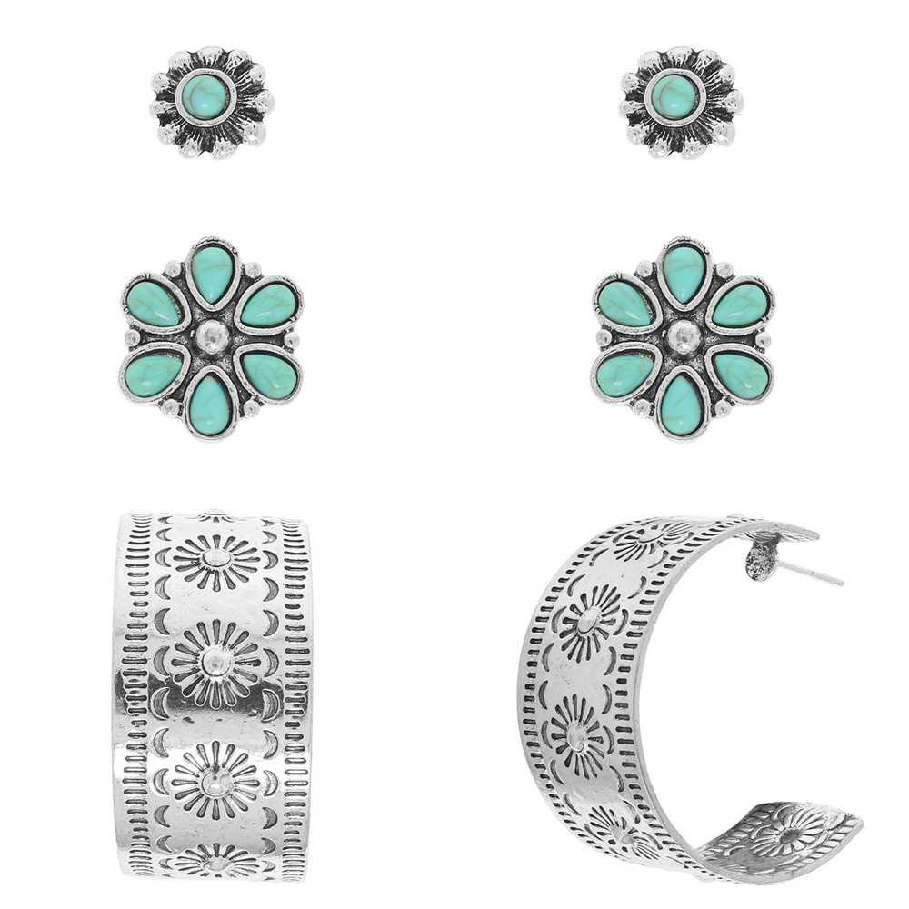 Western Floral Turquoise Earring Set