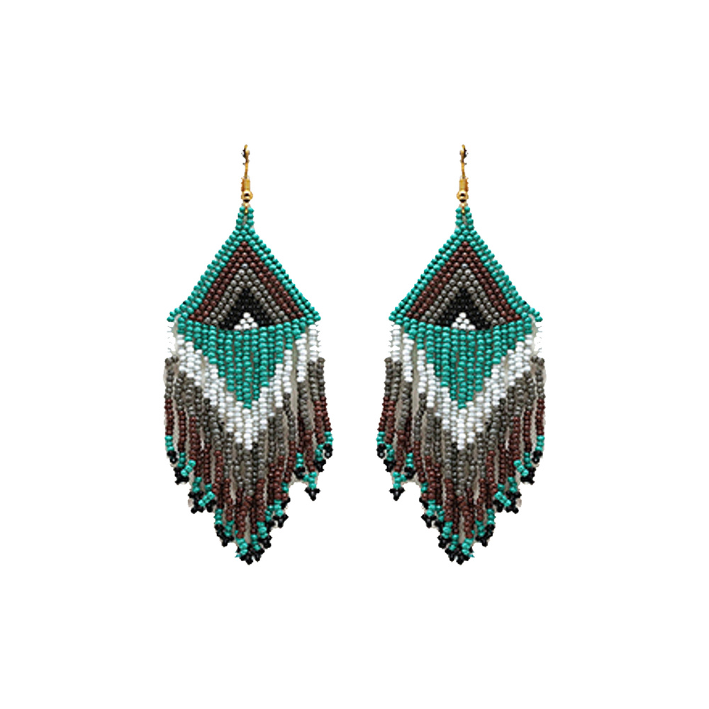Native American Multicolor Seed Bead Cascade Beaded Dangle And Drop Earrings