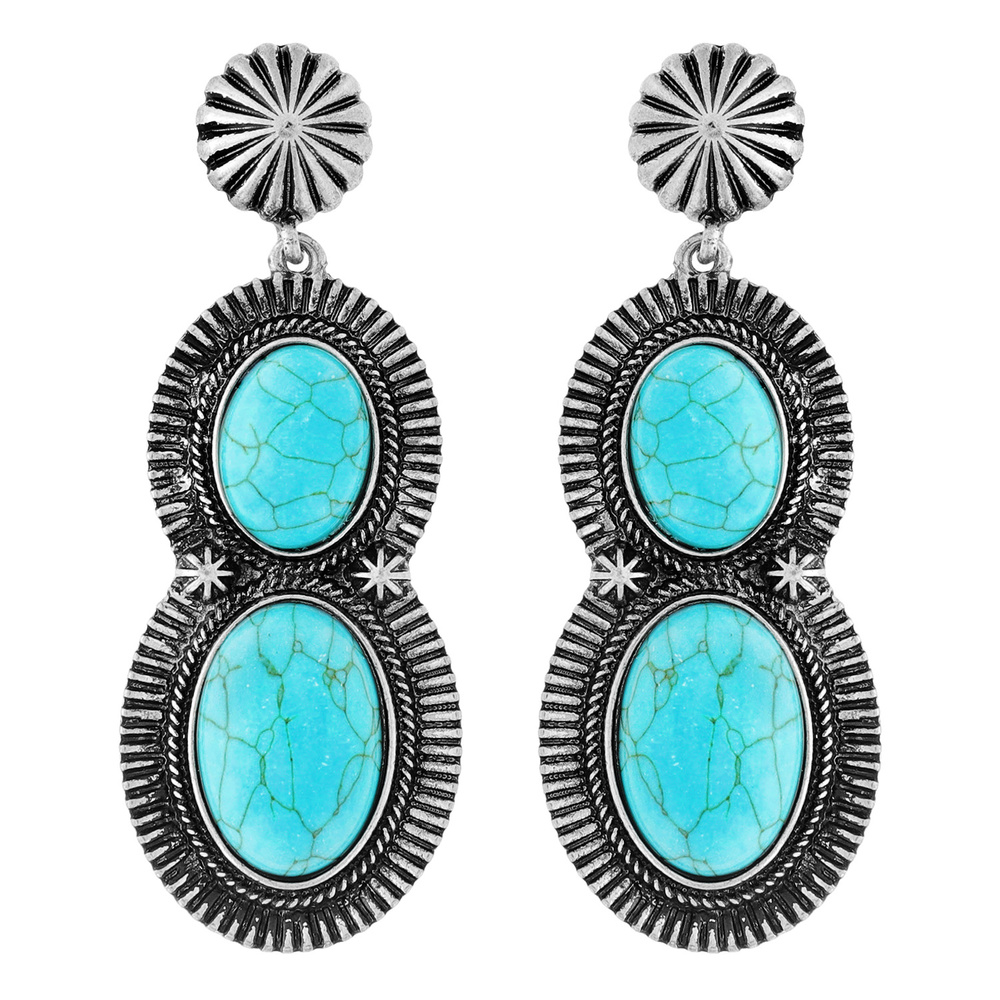 WESTERN TURQUOISE STONE DESIGN TEXTURE EARRINGS