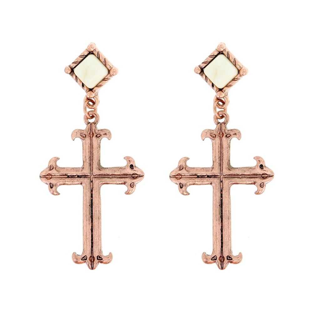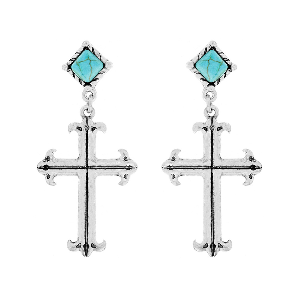 CROSS WESTERN STYLE TURQUOISE DANGLE EARRINGS