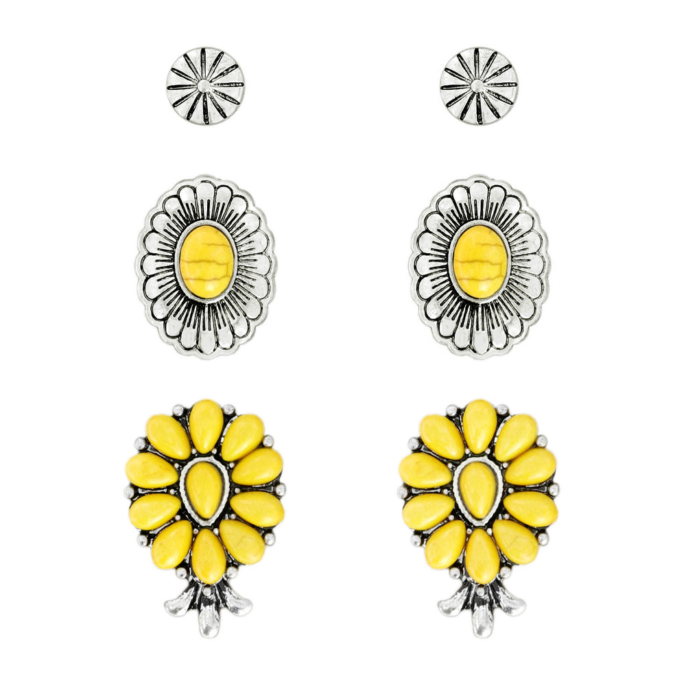 3pair Western Style Squash Blossom Turquoise Post Earrings