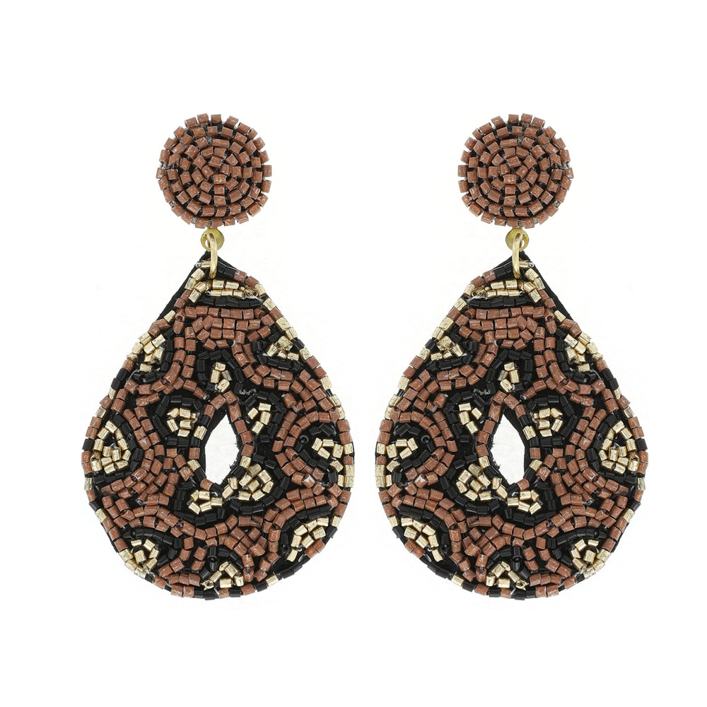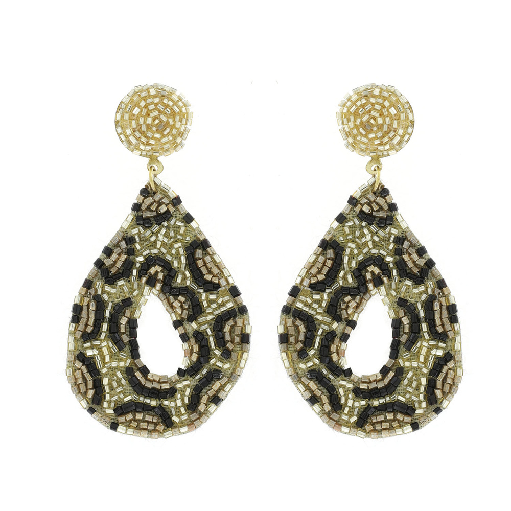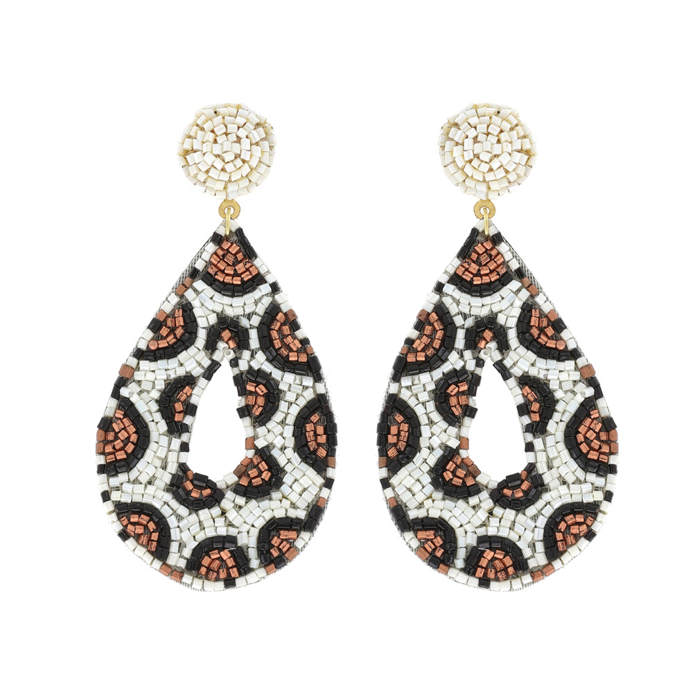 Leopard Cheetah Seed Bead Teardrop Dangel Earrings