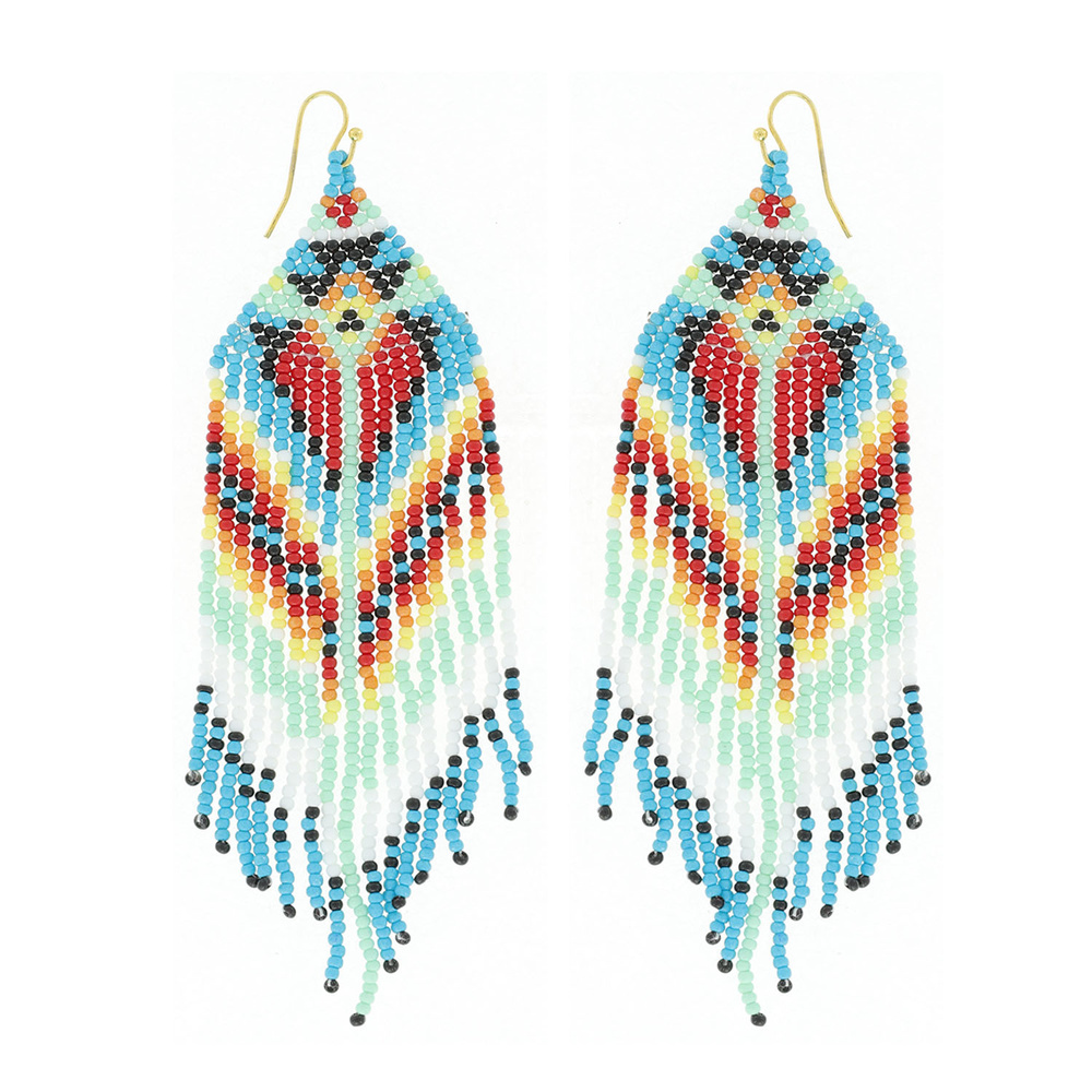 WESTERN NATIVE AMERICAN AZTEC SEED BEAD FRINGE EARRINGS