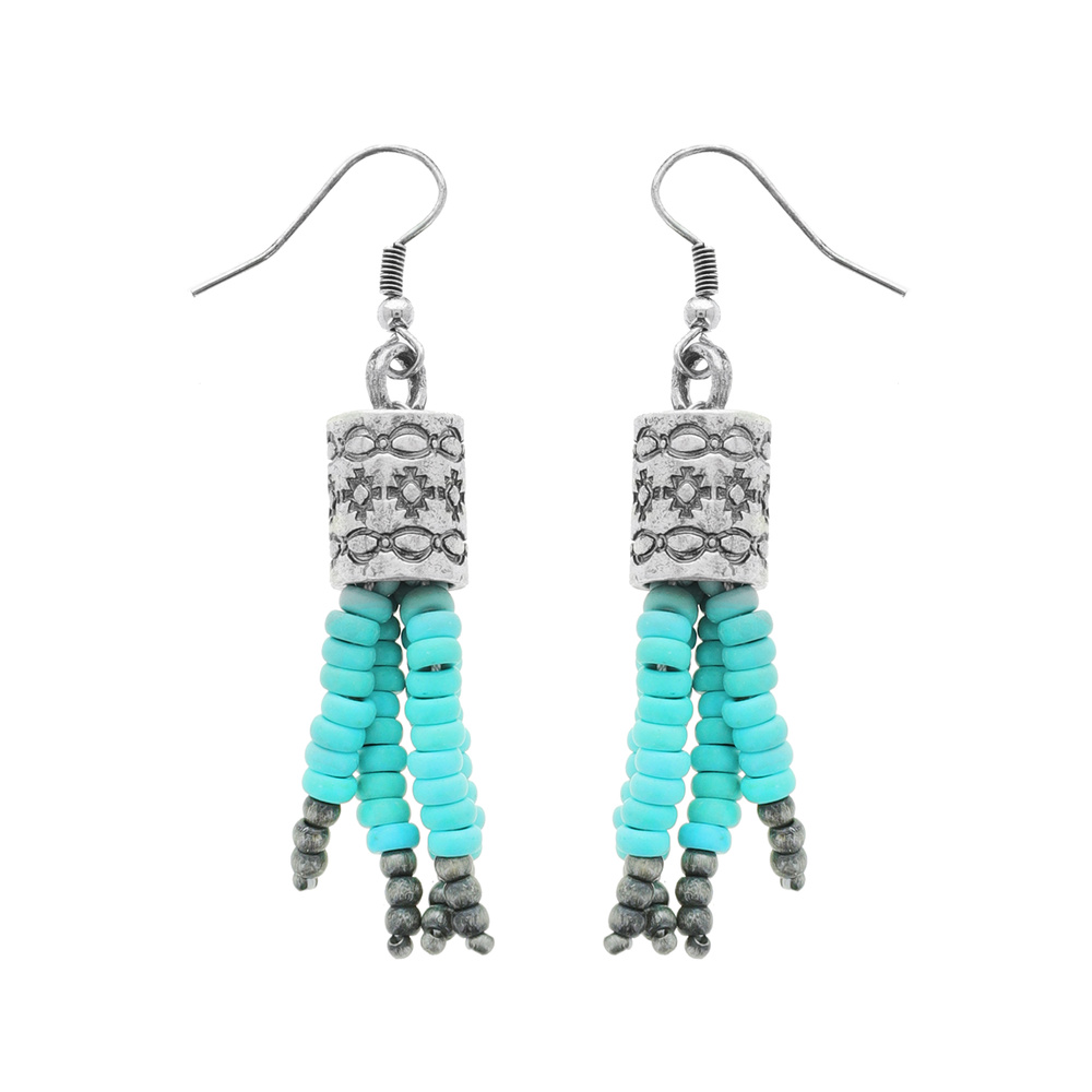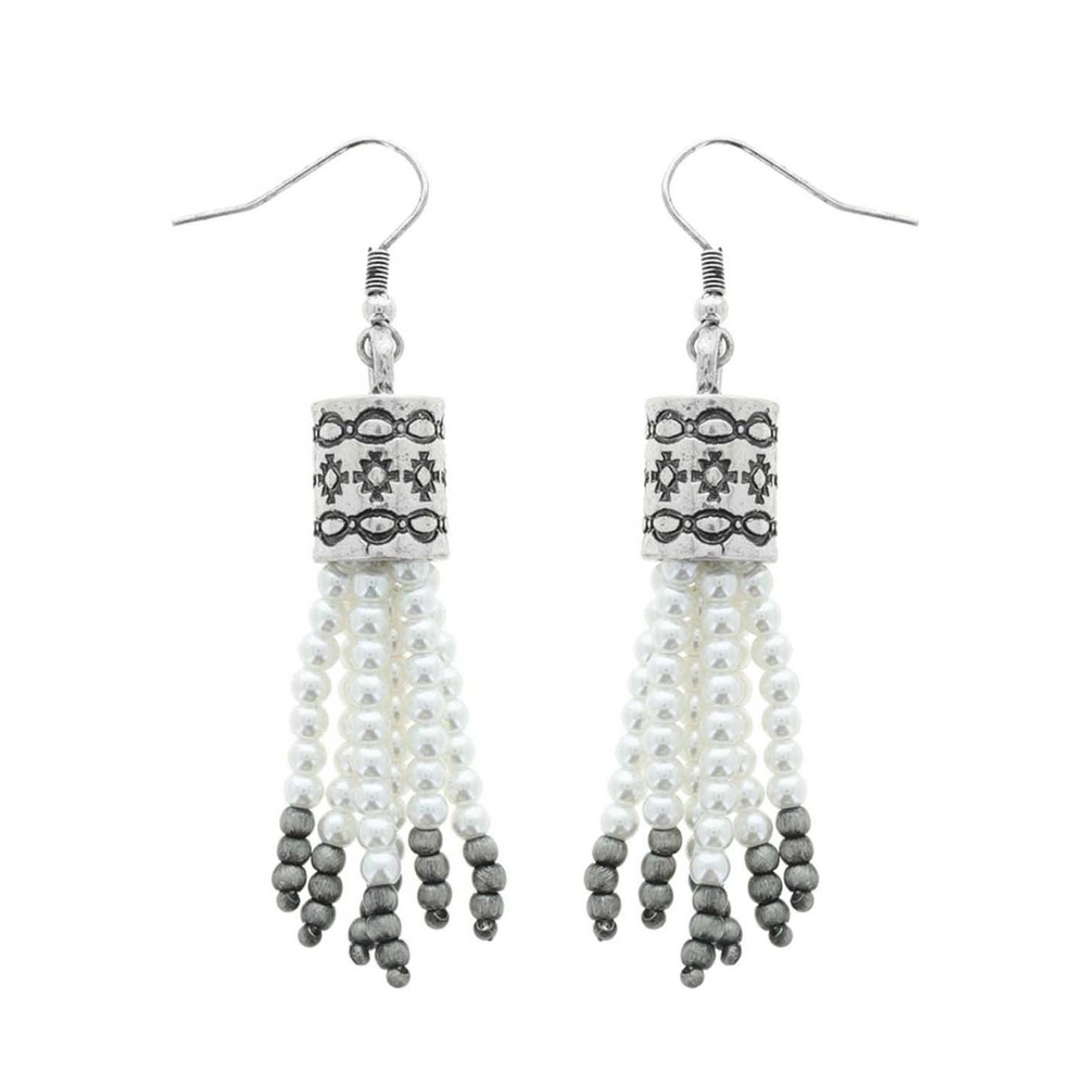 Western Navajo Pearl Beaded Tassel Earrings In Pearl And Turquoise - Southwestern Native Ethnic Boho Jewelry