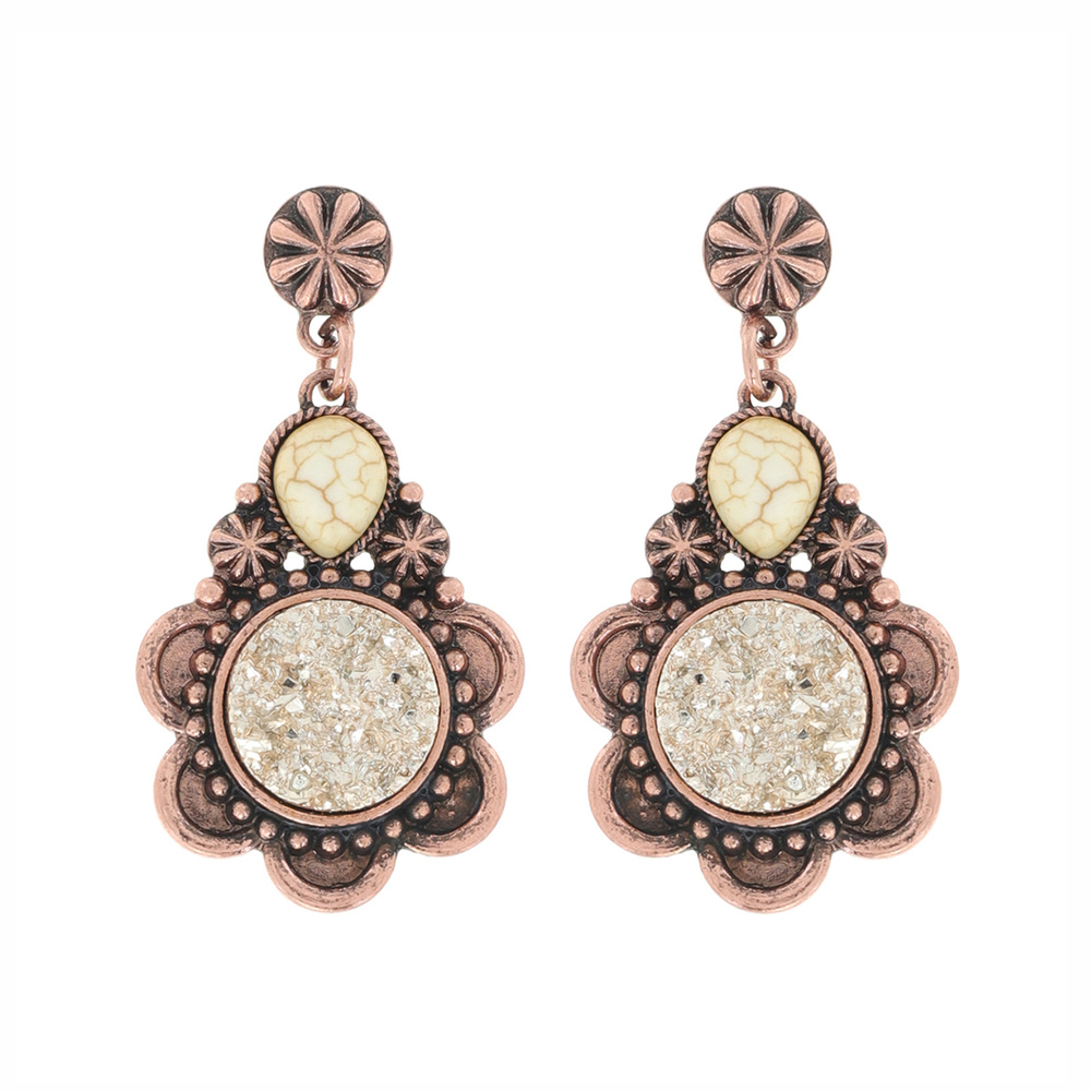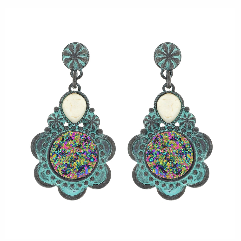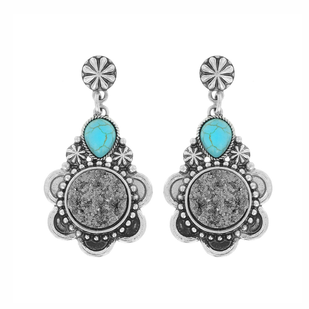 WESTERN TEXTURED DRUZY STONE DROP EARRINGS