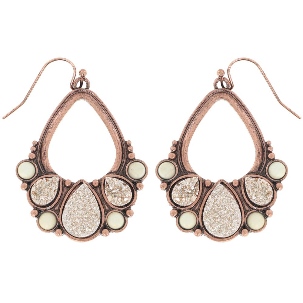 WESTERN TEXTURED DRUZY STONE DROP EARRINGS