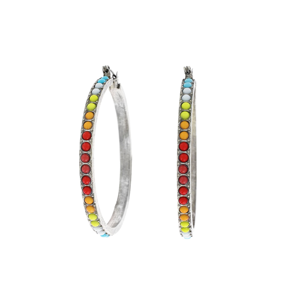 Western Style Inlay Turquoise Semi-stone Hoop Earrings