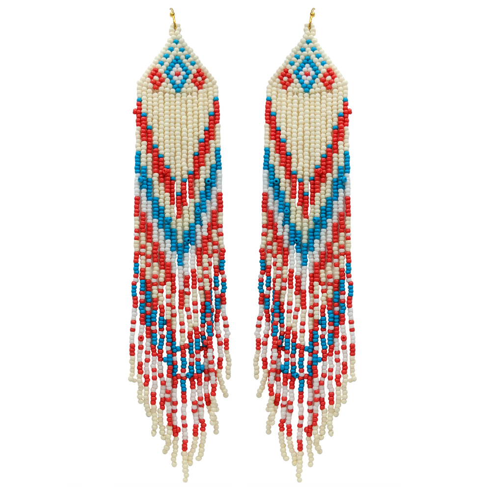 Native American Multicolor Seed Bead Cascade Fringe Long Drop Earrings