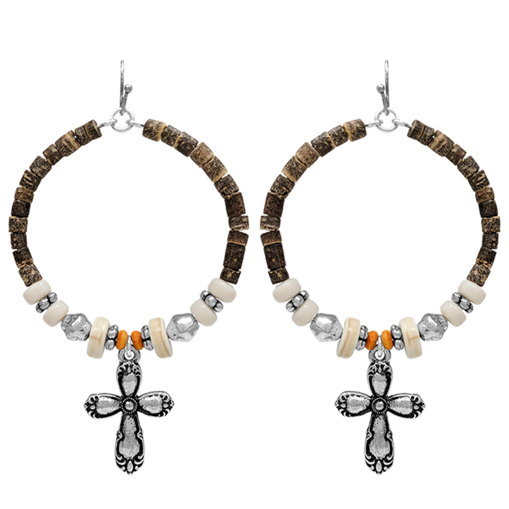 WESTERN CROSS BEAD MIX HOOP DROP EARRINGS