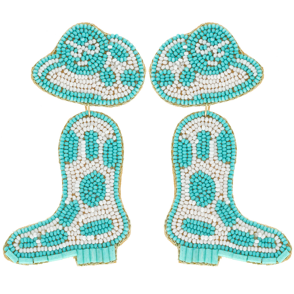 COWGIRL BOOTS & HAT HANDMADE BEADWORK "COUNTRY GIRL" SEED BEAD DROP EARRINGS