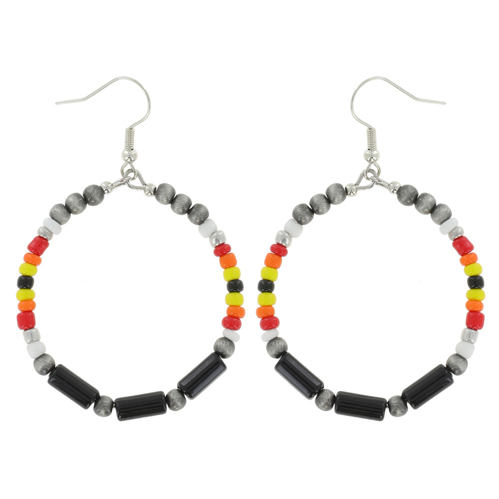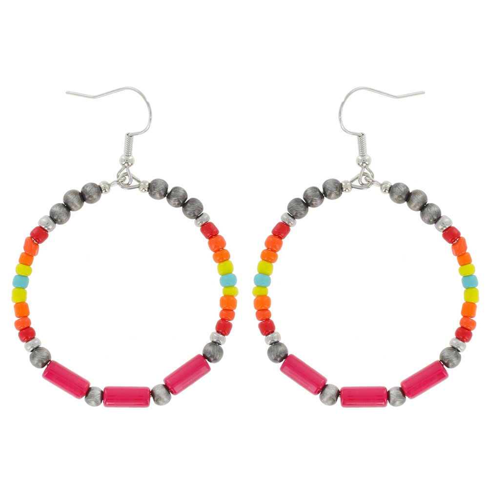 NATIVE AMERICAN STYLE MULTICOLOR BEADED HOOP DANGLE HOOK EARRINGS