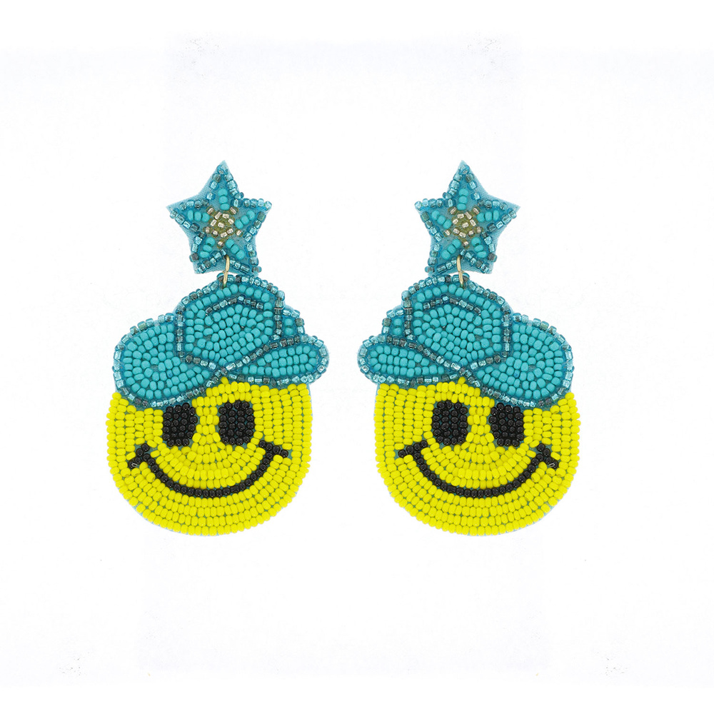 Seed Bead Handmade Beadwork Cowboy Hat Smiley Face Drop Earrings