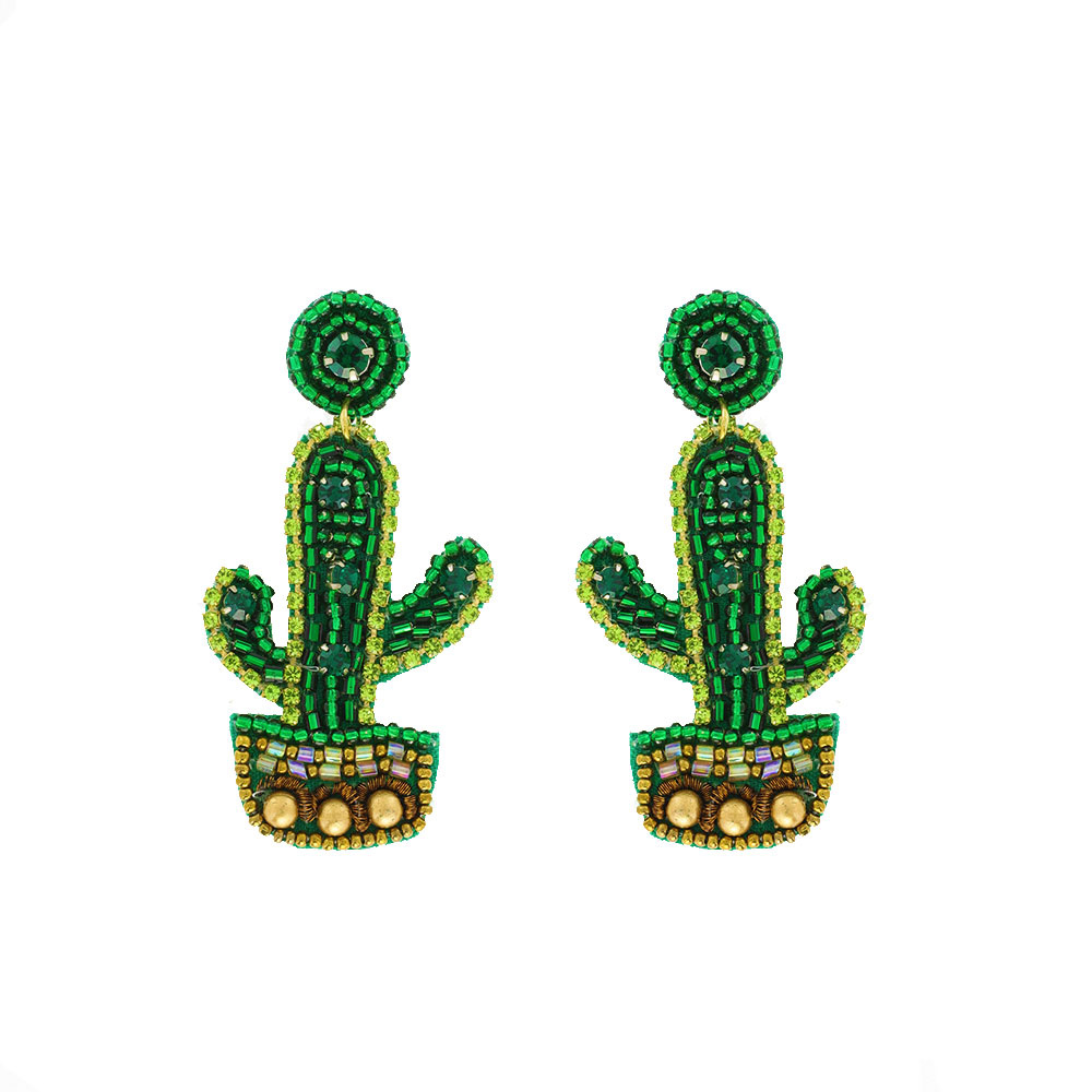 Seed Bead Handmade Cactus Beadwork Drop Earrings