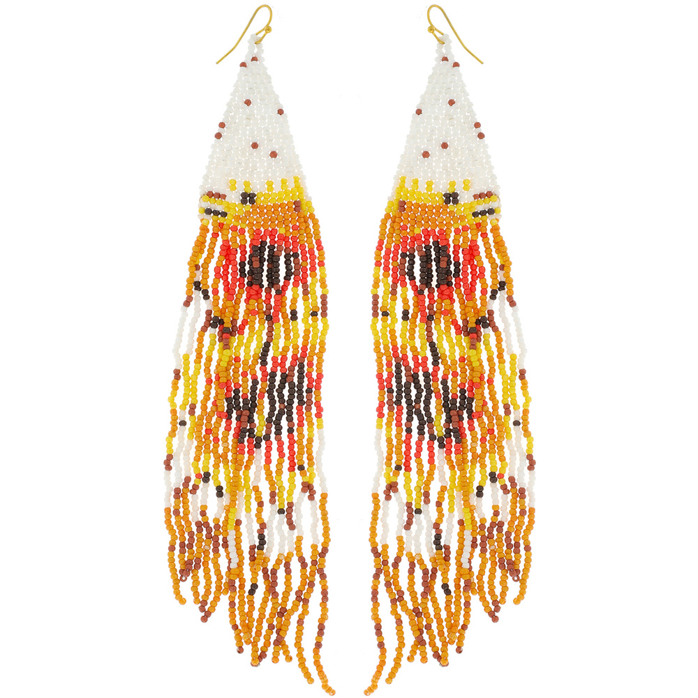 Sunflowers -seed Bead Native American Tassel Print Long Drop Earrings