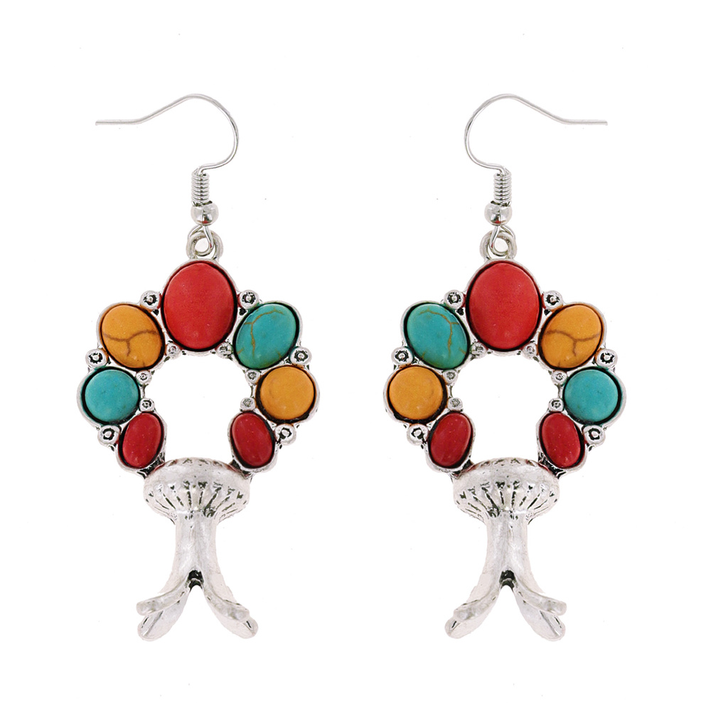Western Multicolor Synthetic Semi Stone Squash Blossom Dangle And Drop Earrings