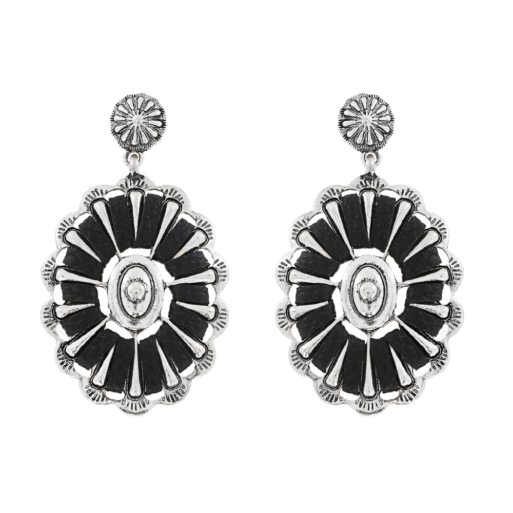 WESTERN 2-TIER WOVEN CONCHO DANGLE AND DROP EARRINGS