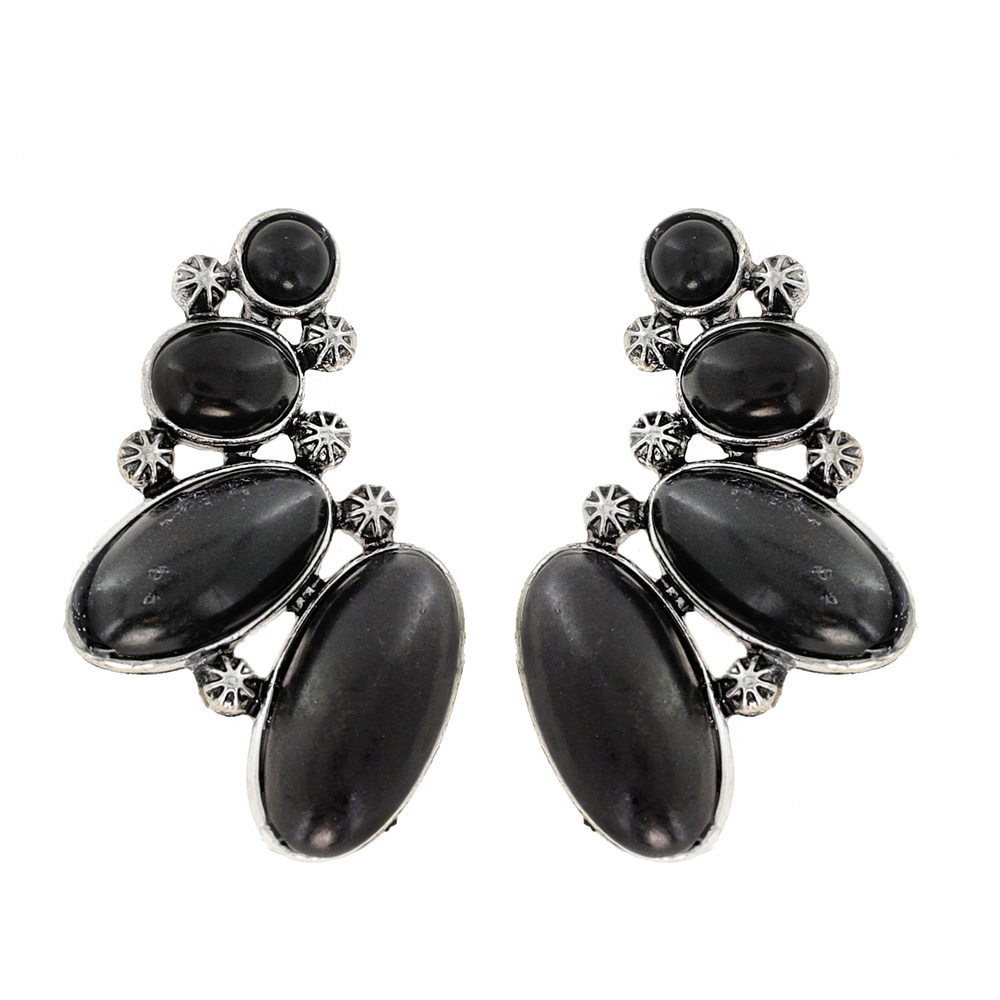 Wester Synthetic Semi Stone Cluster Drop Earrings In Silver Oxidized Metal