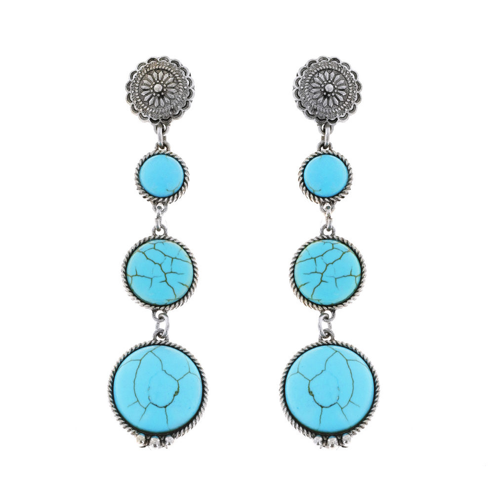 Western 4-tier Turquoise Long Drop Circular Stone Earrings