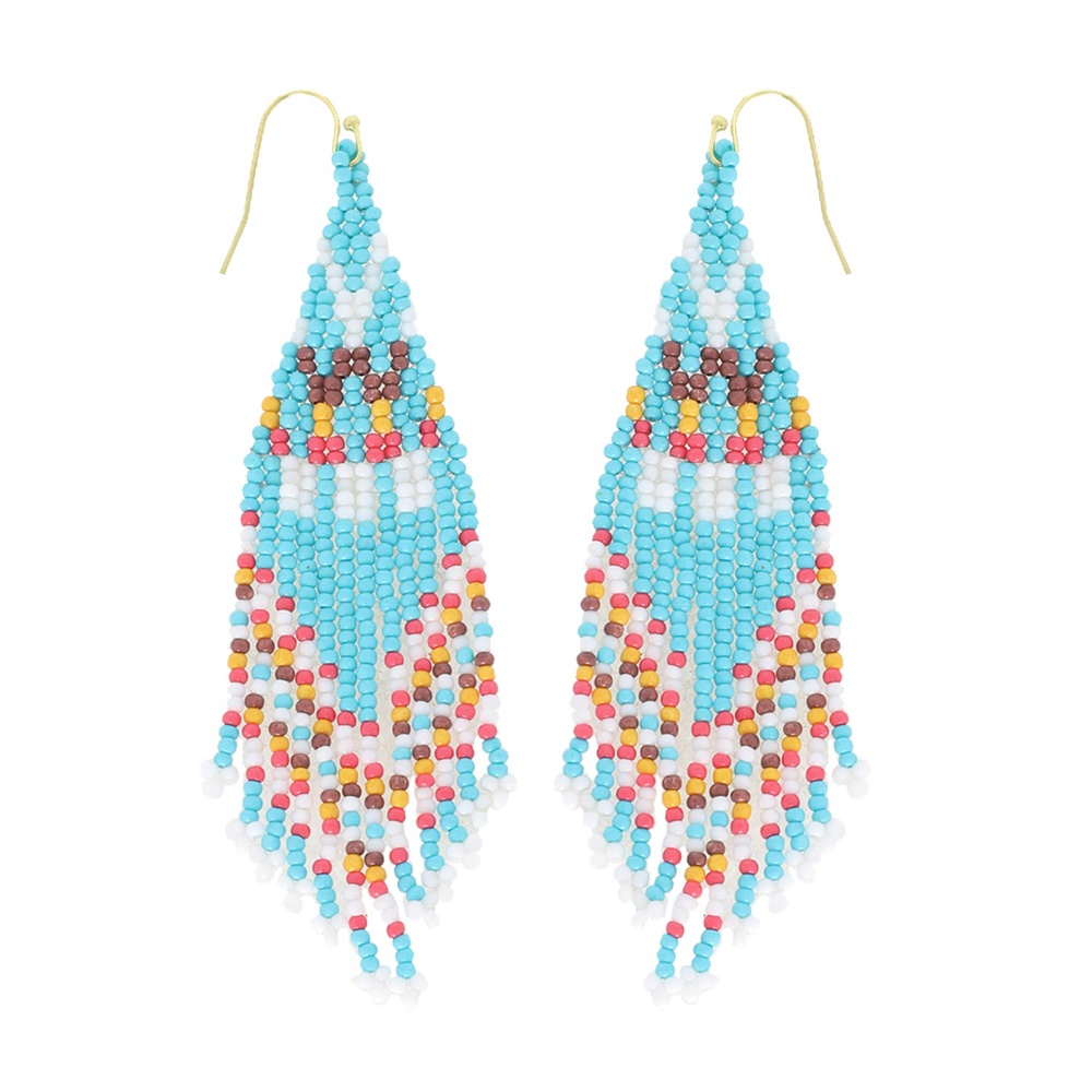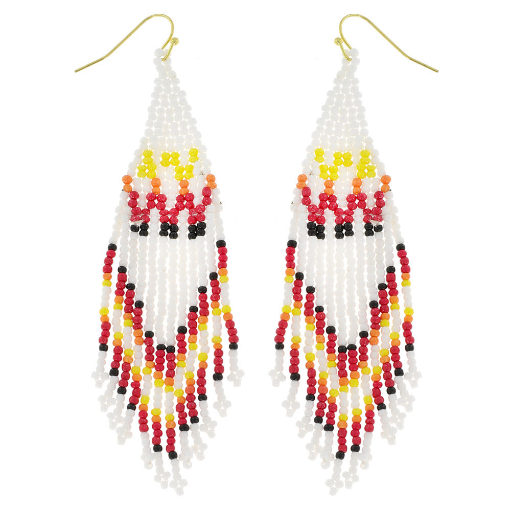 Handmade Native American Zig Zag Pattern Multicolor Seed Bead Beaded Tassel Dangle And Drop Hook Earrings