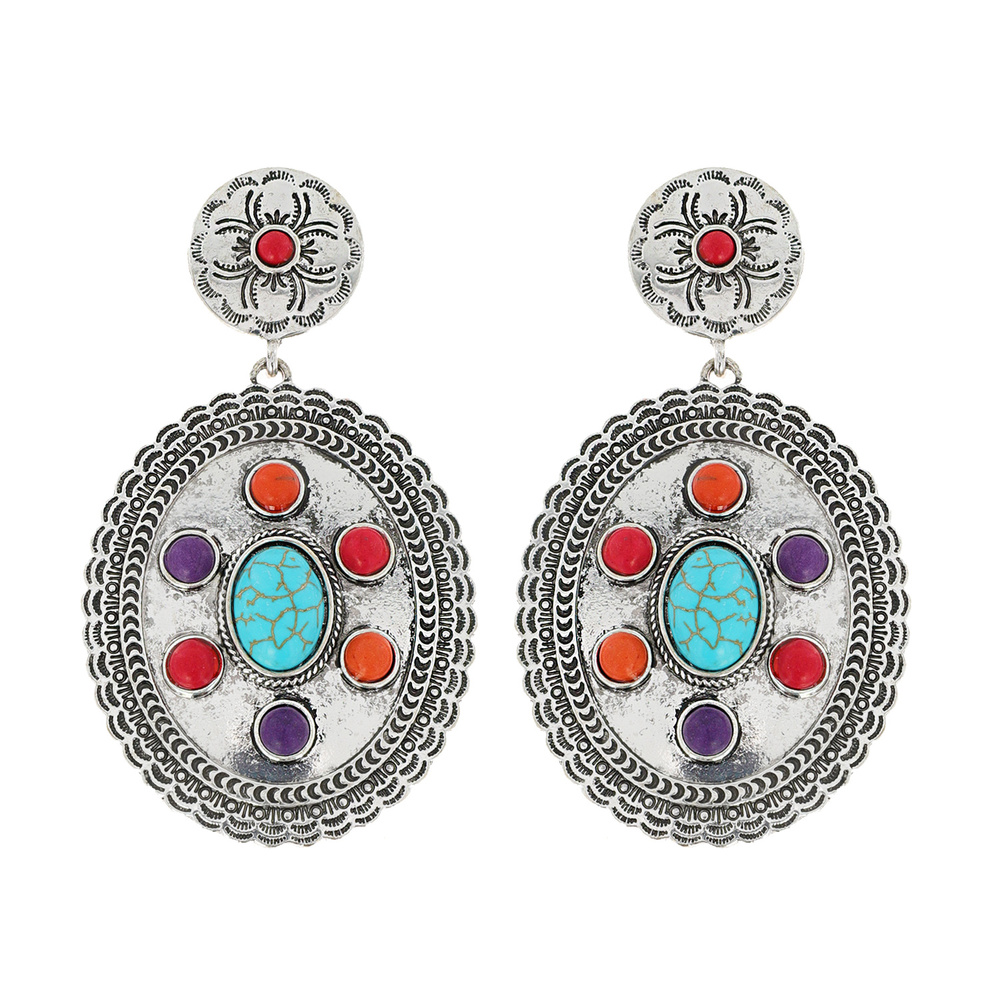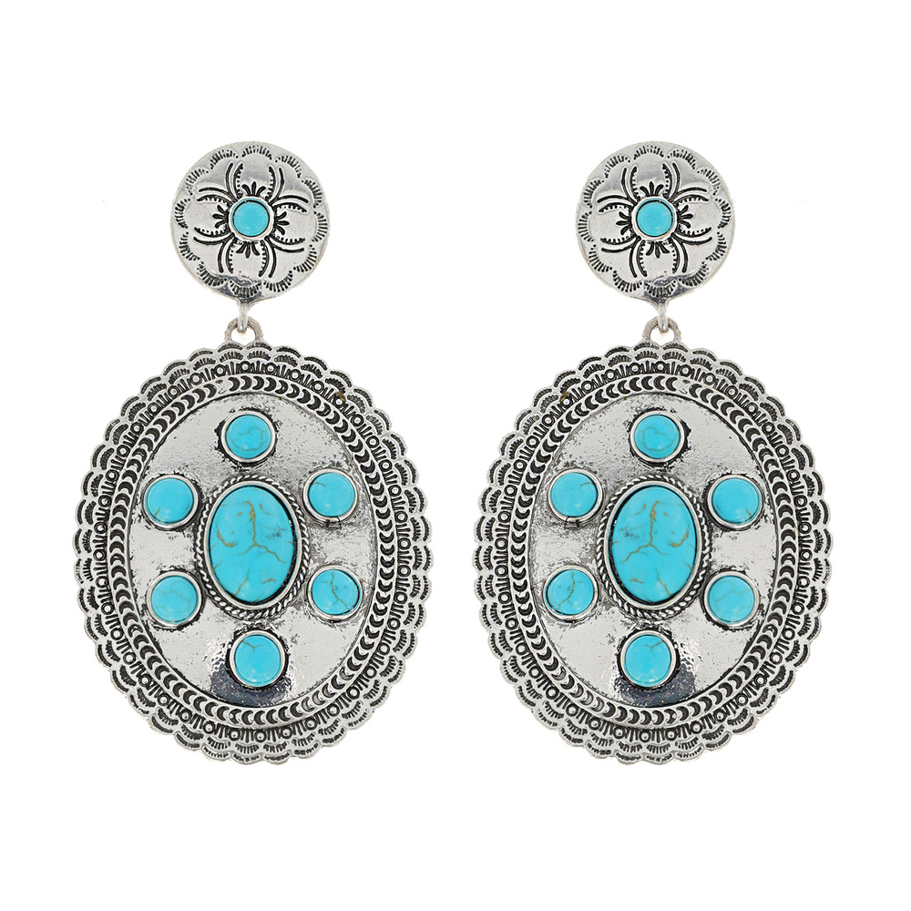 2-tier Synthetic Turquoise Semi Stone Western Concho Dangle And Drop Earrings