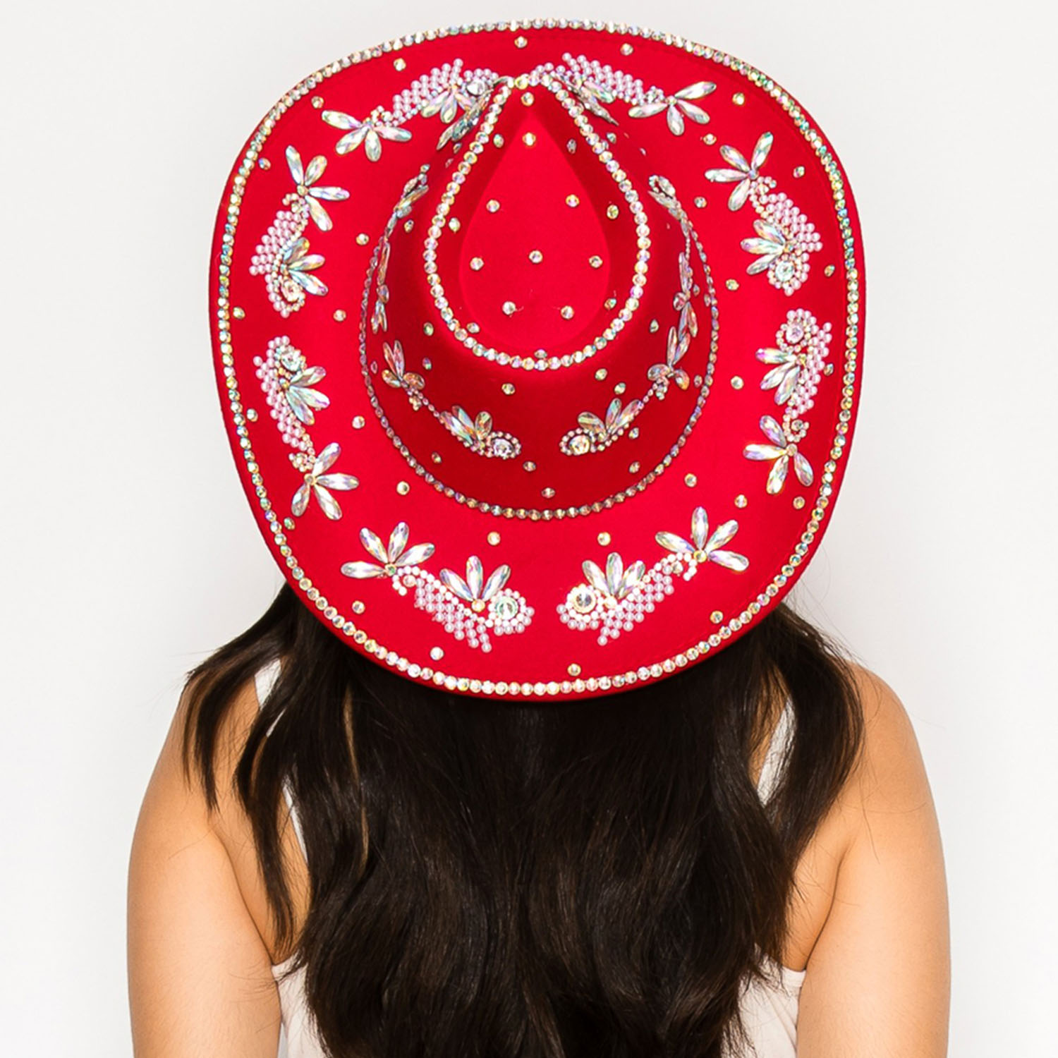 MARIACHI THEME SOMBRERO COWBOY HAT WITH CRYSTAL AND PEARL DETAILING