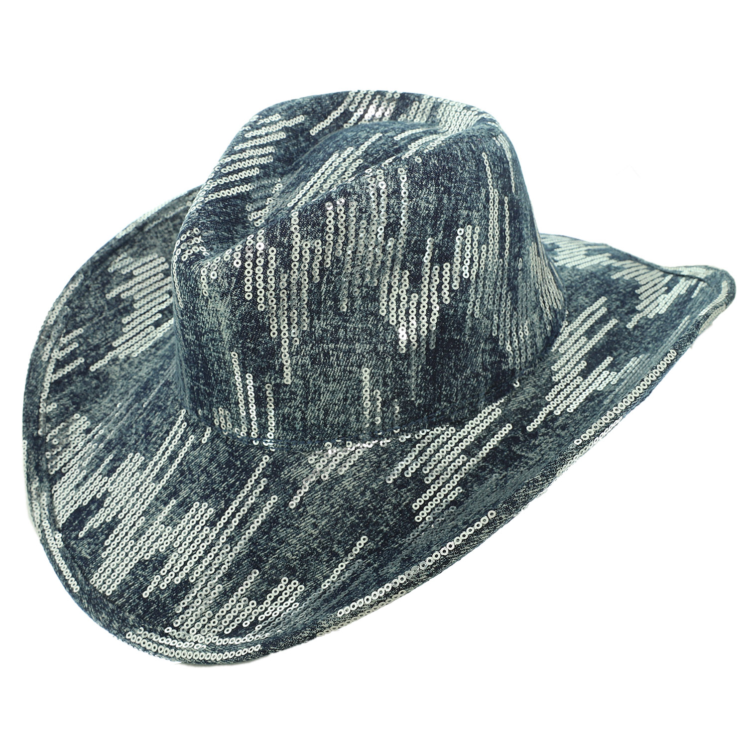 WESTERN SEQUIN DENIM COWBOY HAT WITH CURVED BRIM
