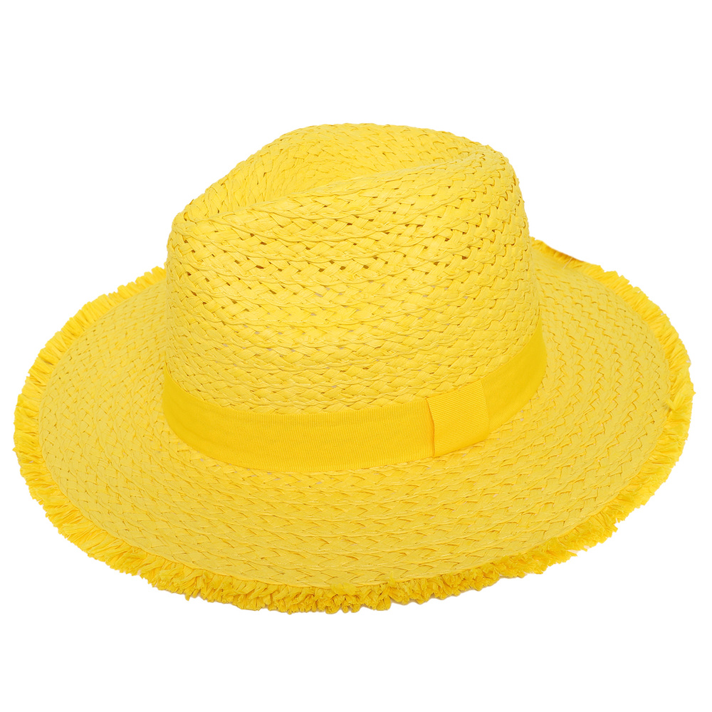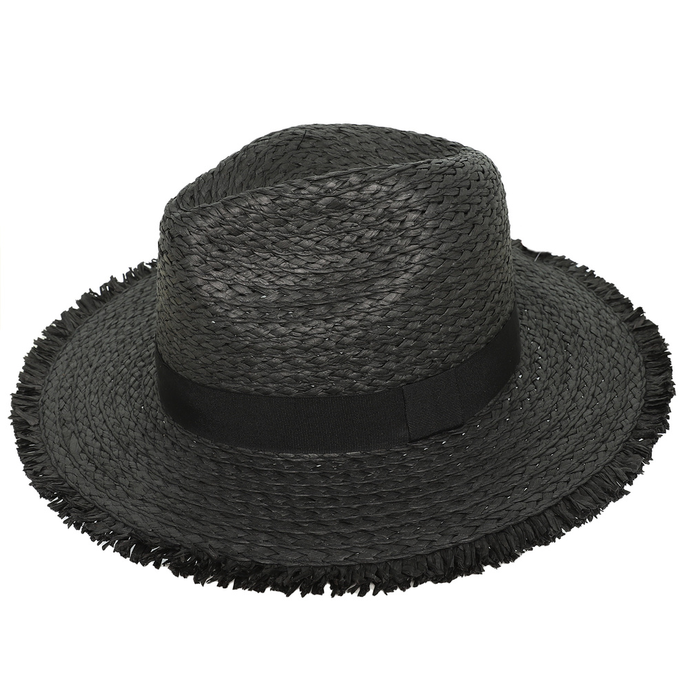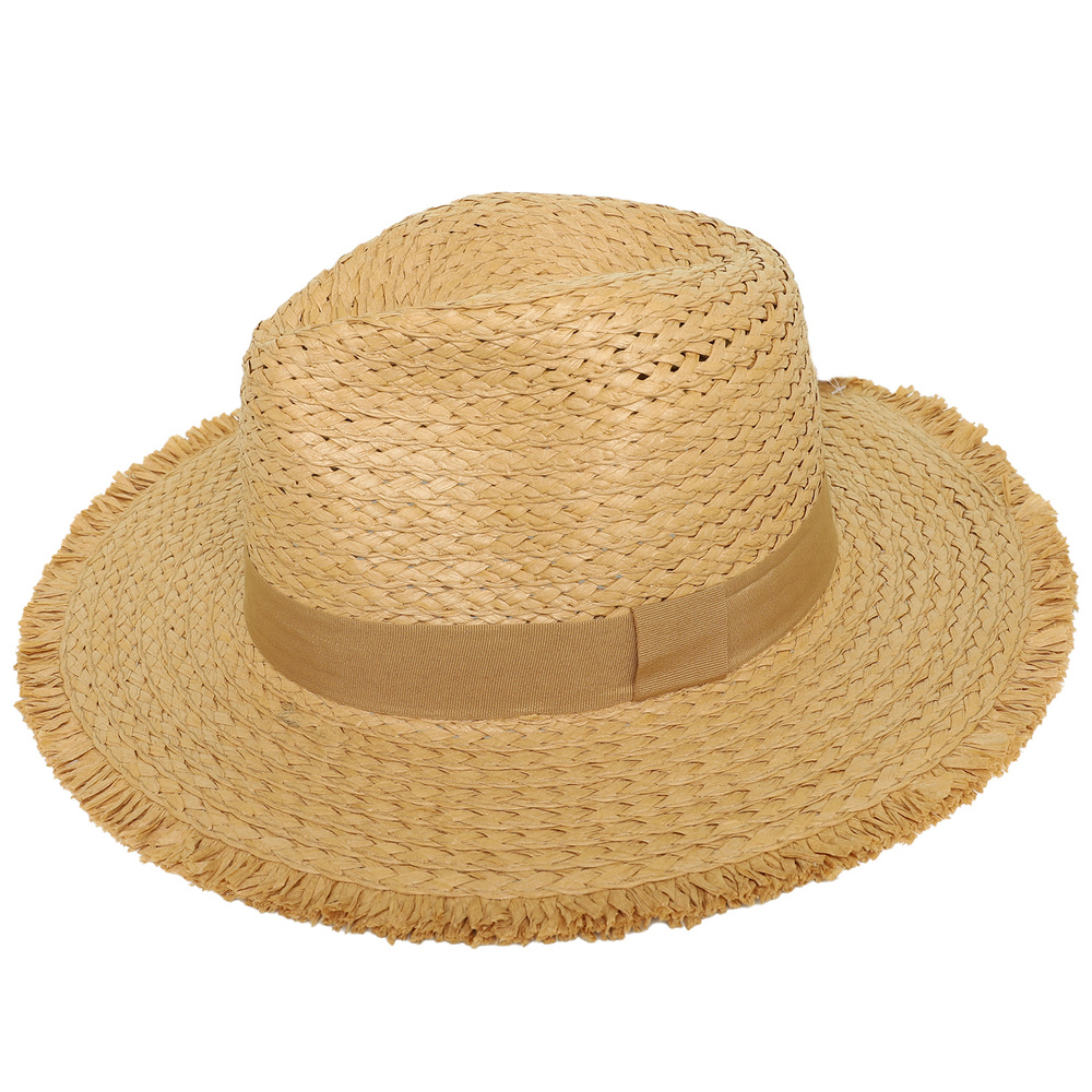 WESTERN PINCHED FRONT STYLE STRAW WOVEN COWBOY HAT WITH FRAY EDGES