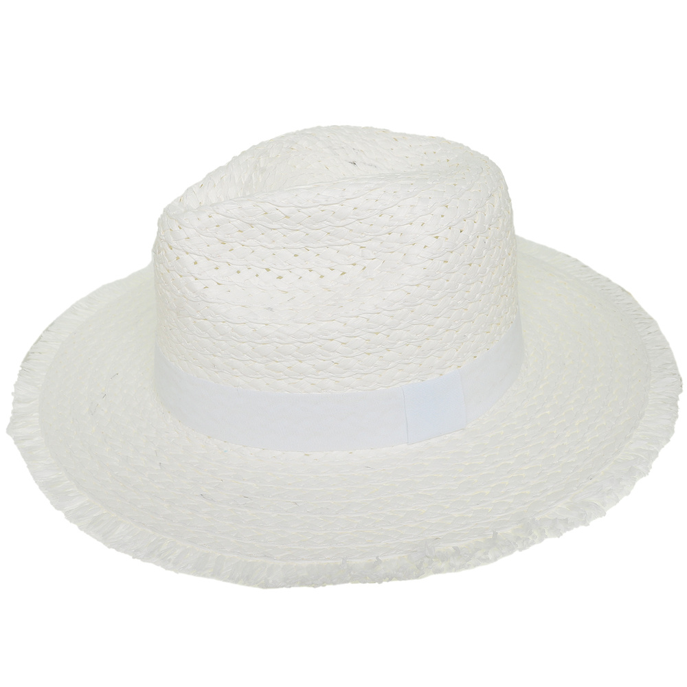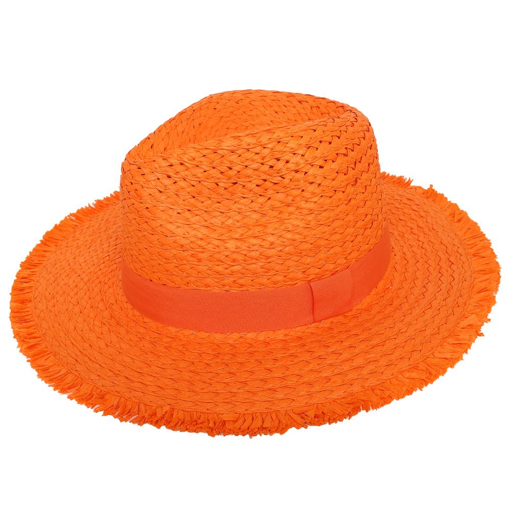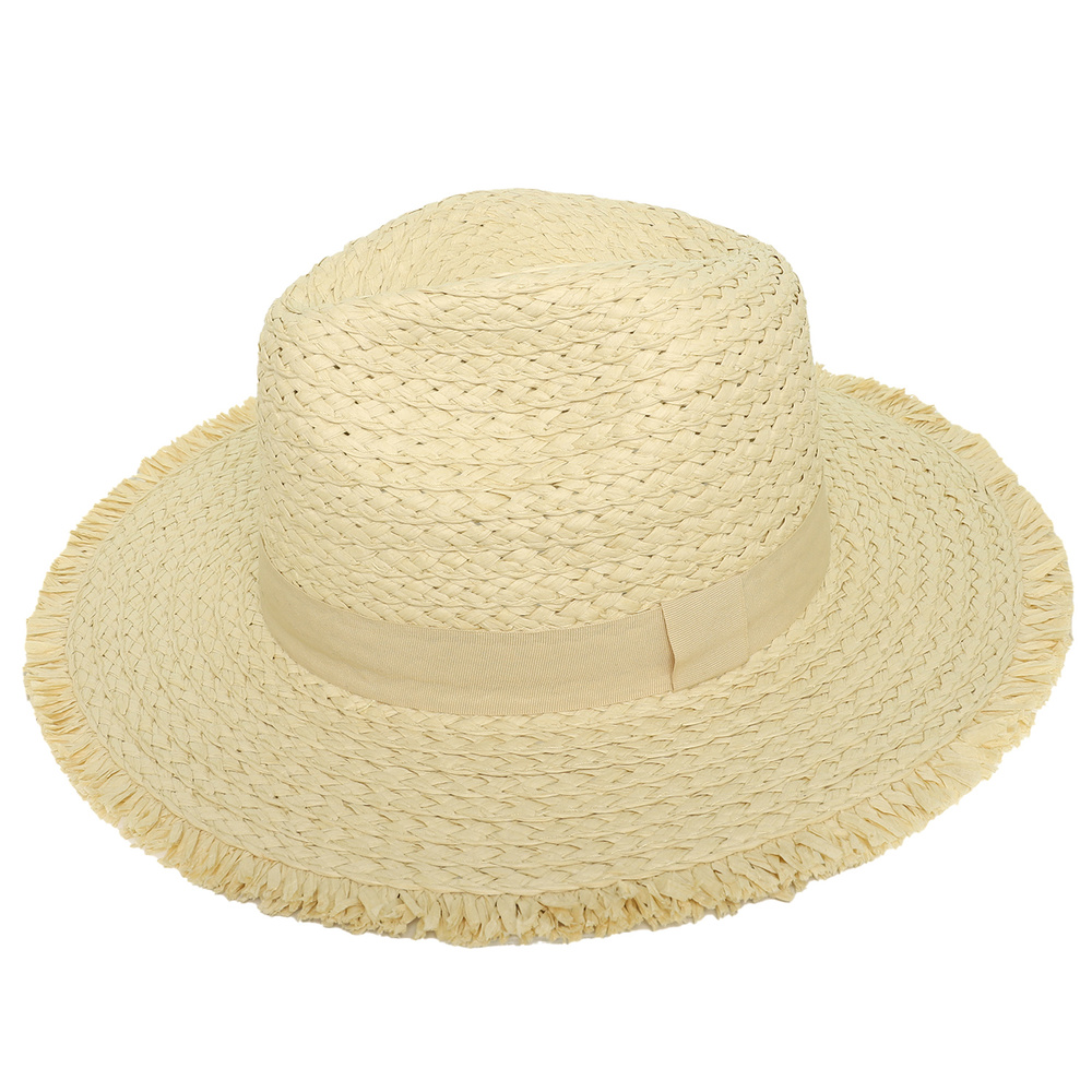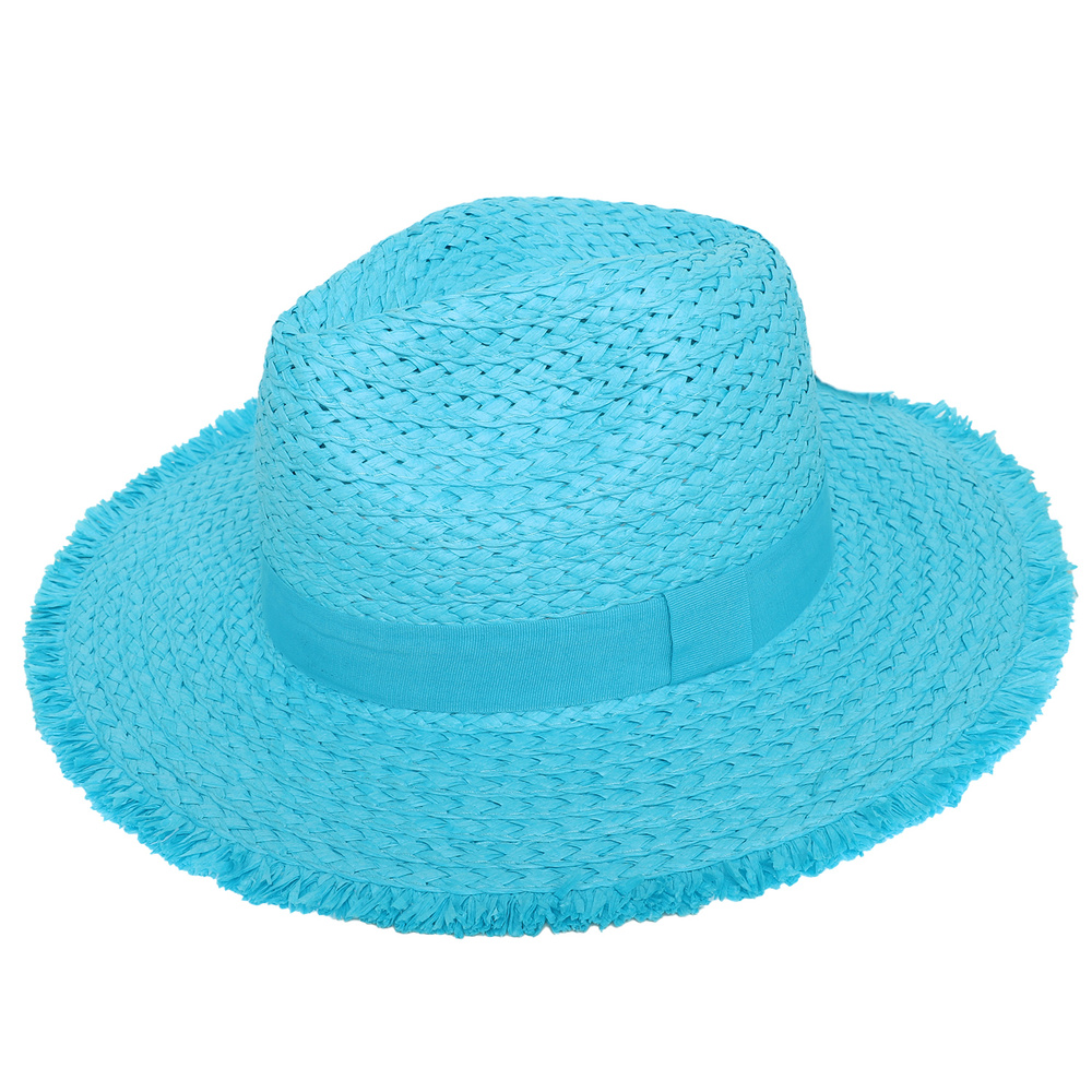 WESTERN PINCHED FRONT STYLE STRAW WOVEN COWBOY HAT WITH FRAY EDGES