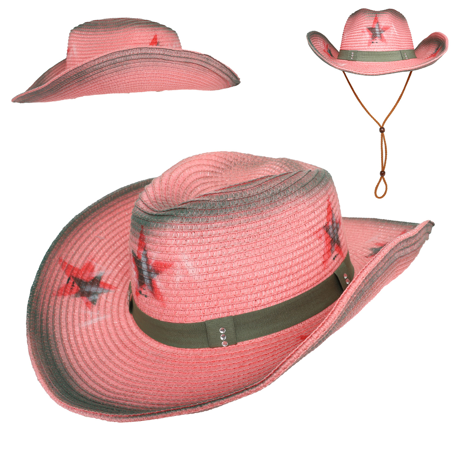 Fashion Western Star Print Paper Braid Cowboy Hat