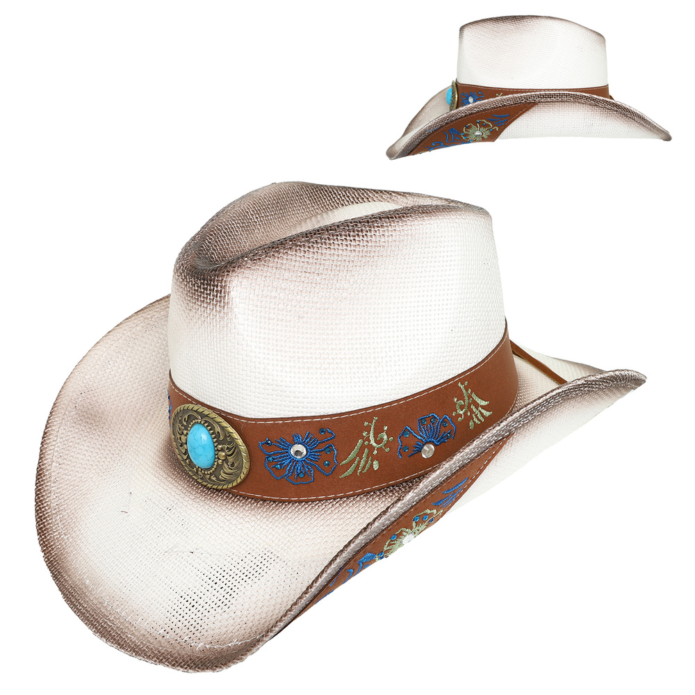 PAPER BRAID COWBOY HAT WITH DECORATIVE TURQUOISE HAT BAND
