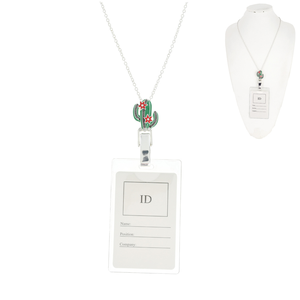 CACTUS ENAMEL IDENTIFICATION CARD VACCINE CARD BADGE CLIP LANYARD NECKLACE
